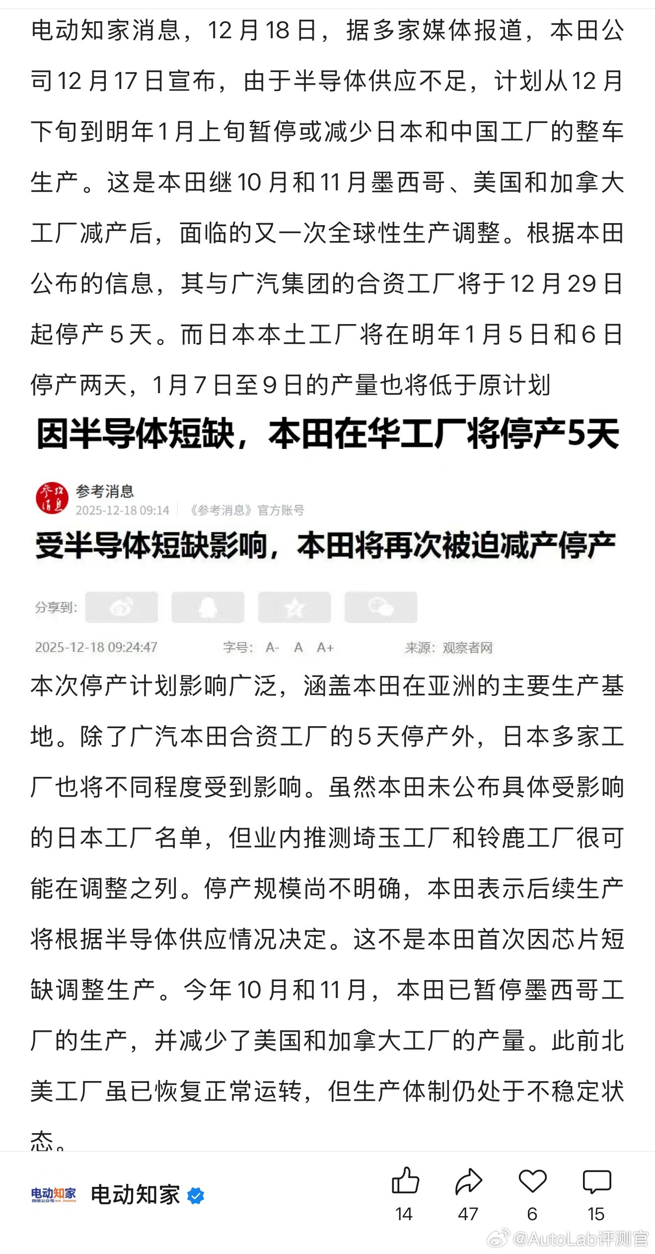 本田因为芯片短缺,要停产几天,今年前11个月,本田在中国销量为57.8万辆,同比下降21.86%