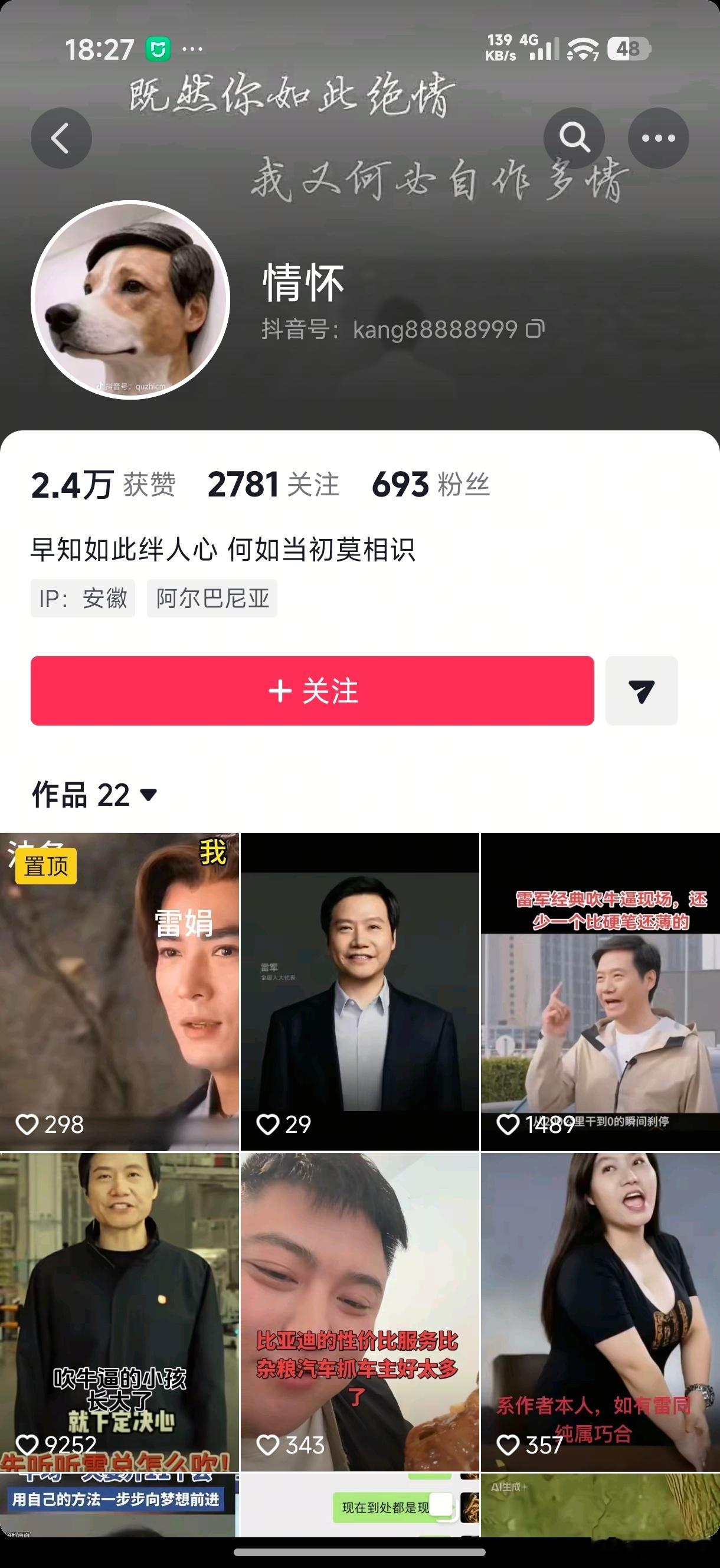 这些人真够无聊的,用AI恶搞雷总,能影响雷总啥?除了让这群人赚点流量,然后让某些群体高兴一下,还能有什么用?对小米来说,这些毫无影响…