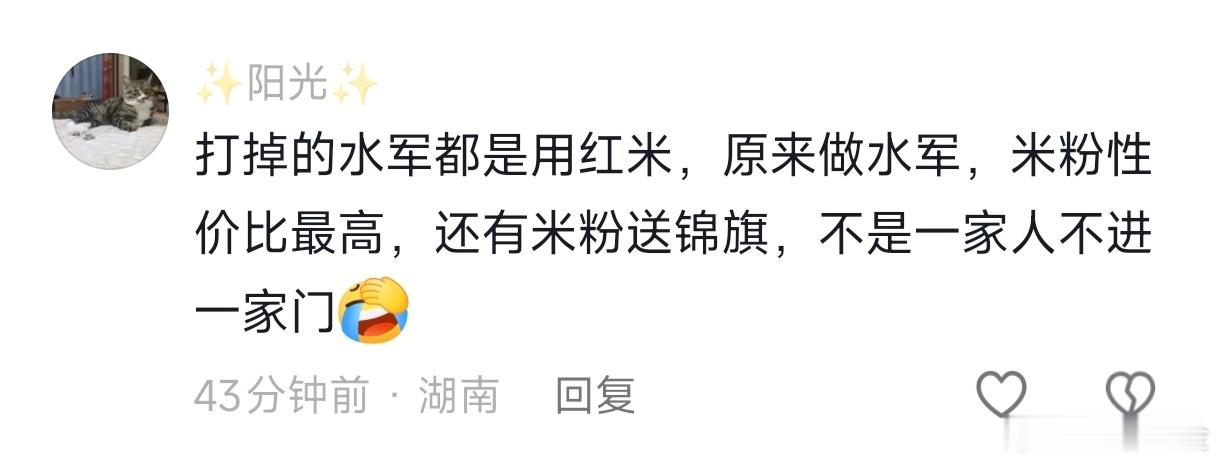 知道水军团伙为啥要用红米手机吗?很简单,他们肯定会选配置高、价格低的手机,也就是俗称的性价比,因为可以花最低的钱,买到多开应用不卡的手机,要是买其他低配高价的手机,不仅钱多花了,而且多开啥的也要打折扣,人家只是坏,并不是傻…还有,水军团伙的目的是为了赚钱,自然投入越小越好,这都不懂吗?这跟米粉有个毛的关系?谁告诉你买啥手机就是啥粉了?我买苹果iPhone 17 Pro了,难不成我是果粉?闹麻了