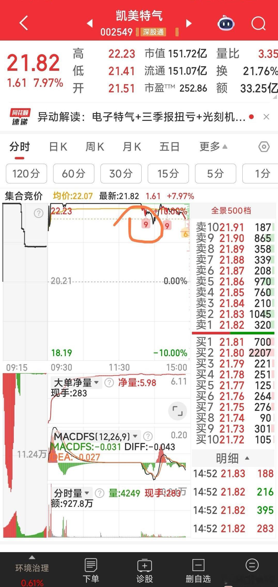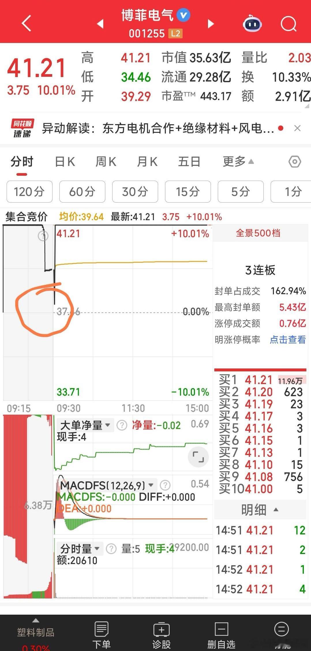 【今日重点做了三牛】今日重点做了三牛:开盘集合时博菲电气,破口时凯美特气,蓄势待发时高乐股份