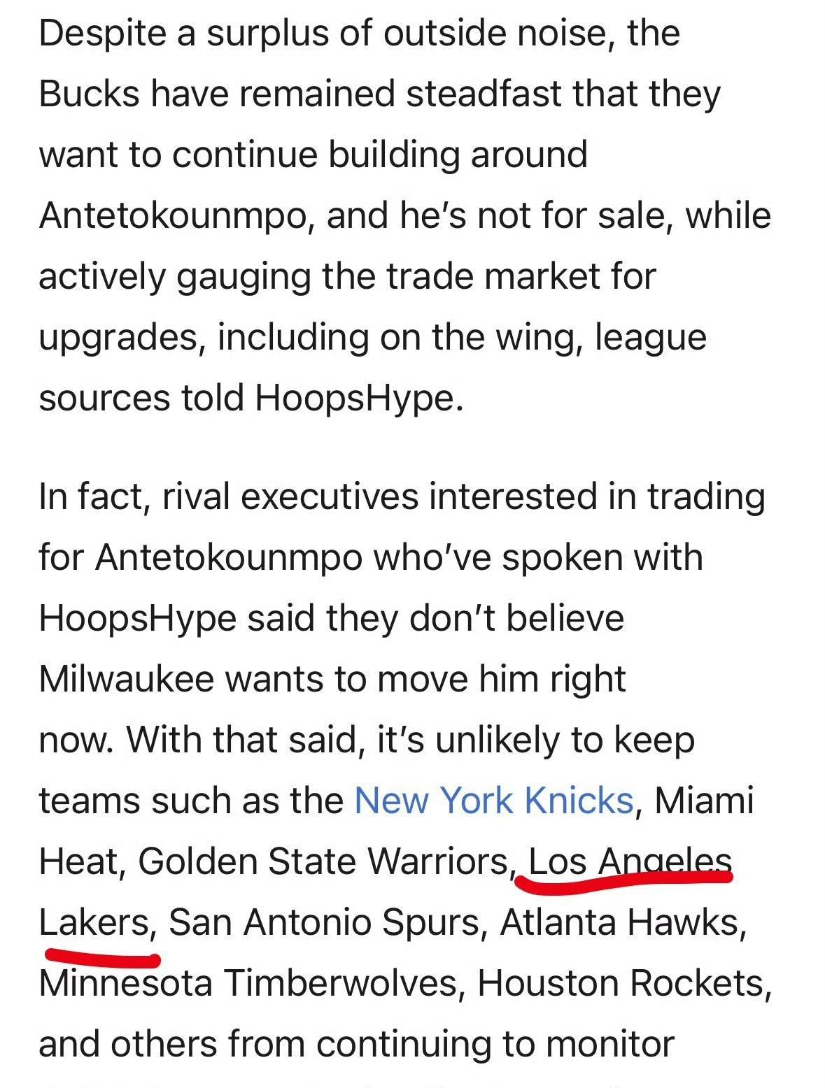 Scotto:那些有意通过交易得到字母哥的其他球队管理层人员在接受采访时也表示,他们认为雄鹿目前并无送走字母哥的打算。 Scotto:据联盟消息人士透露,金州勇士队自墨菲参加选秀起就对他青睐有加。