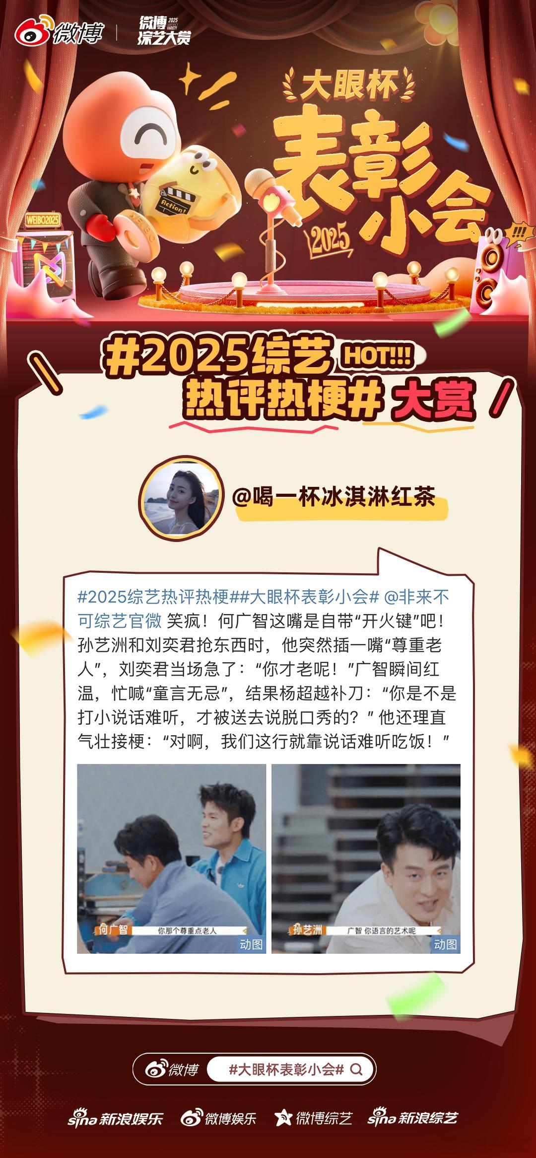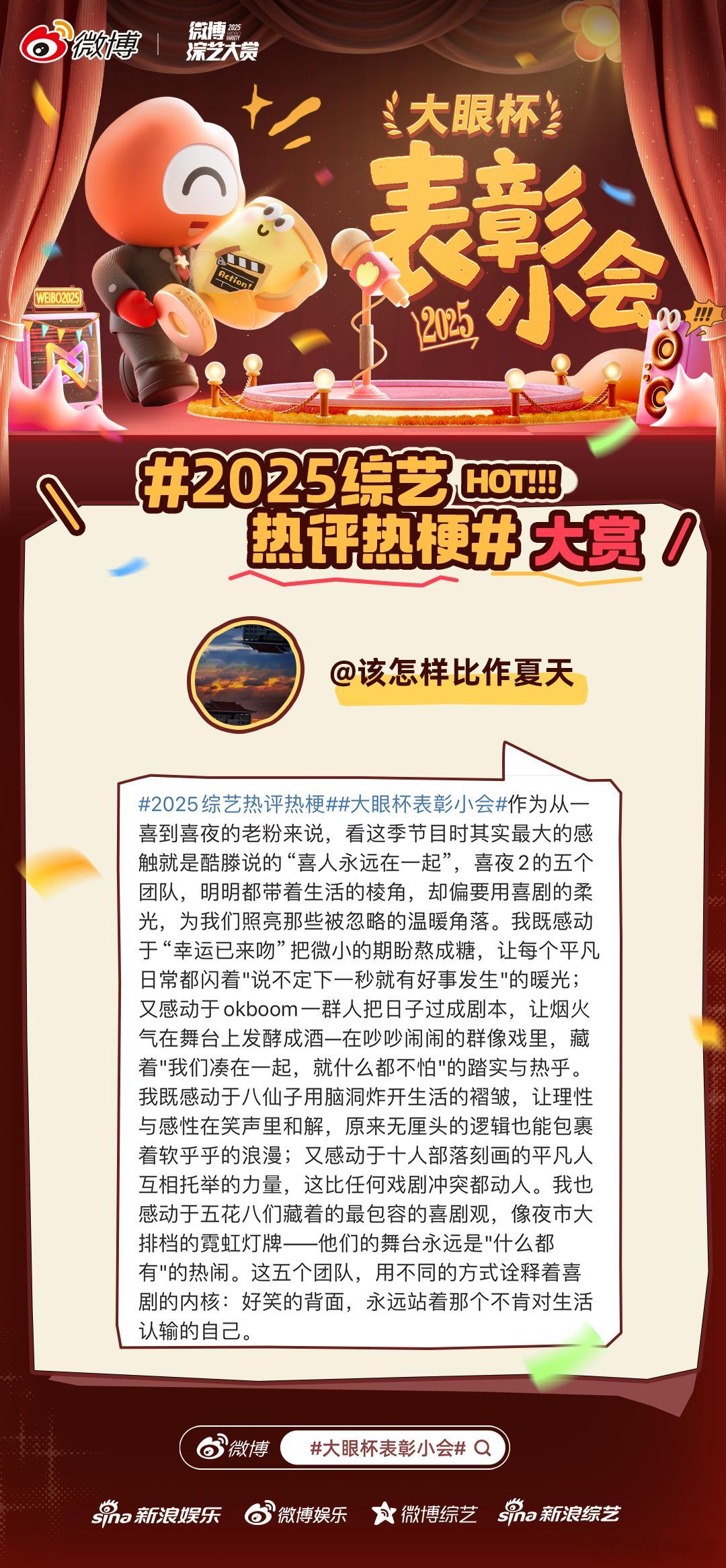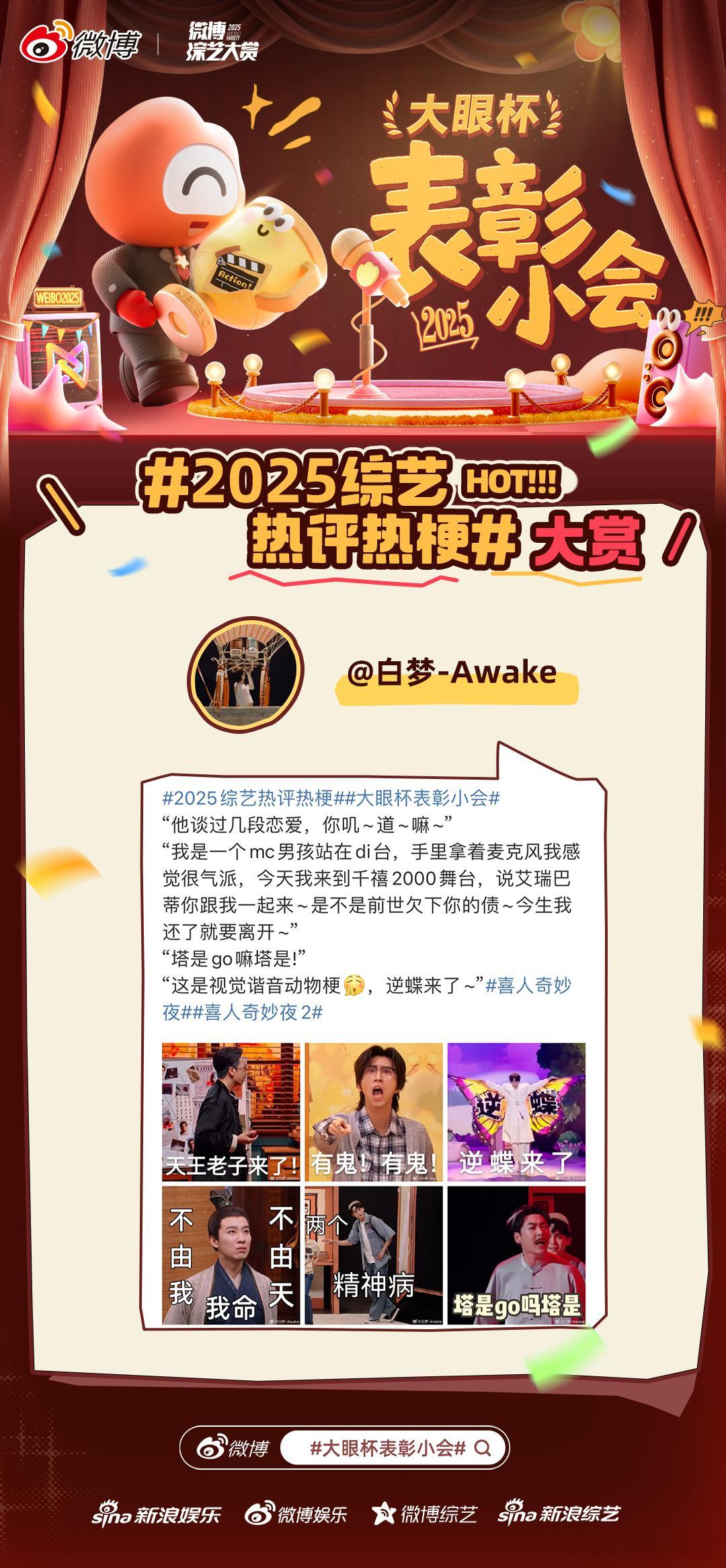 2025综艺热评热梗✨ 那些刷屏的金句、暖心热评、爆笑热梗,都是节目与观众的双向奔赴哪一句击中你的心?大眼杯表彰小会2025综艺大赏