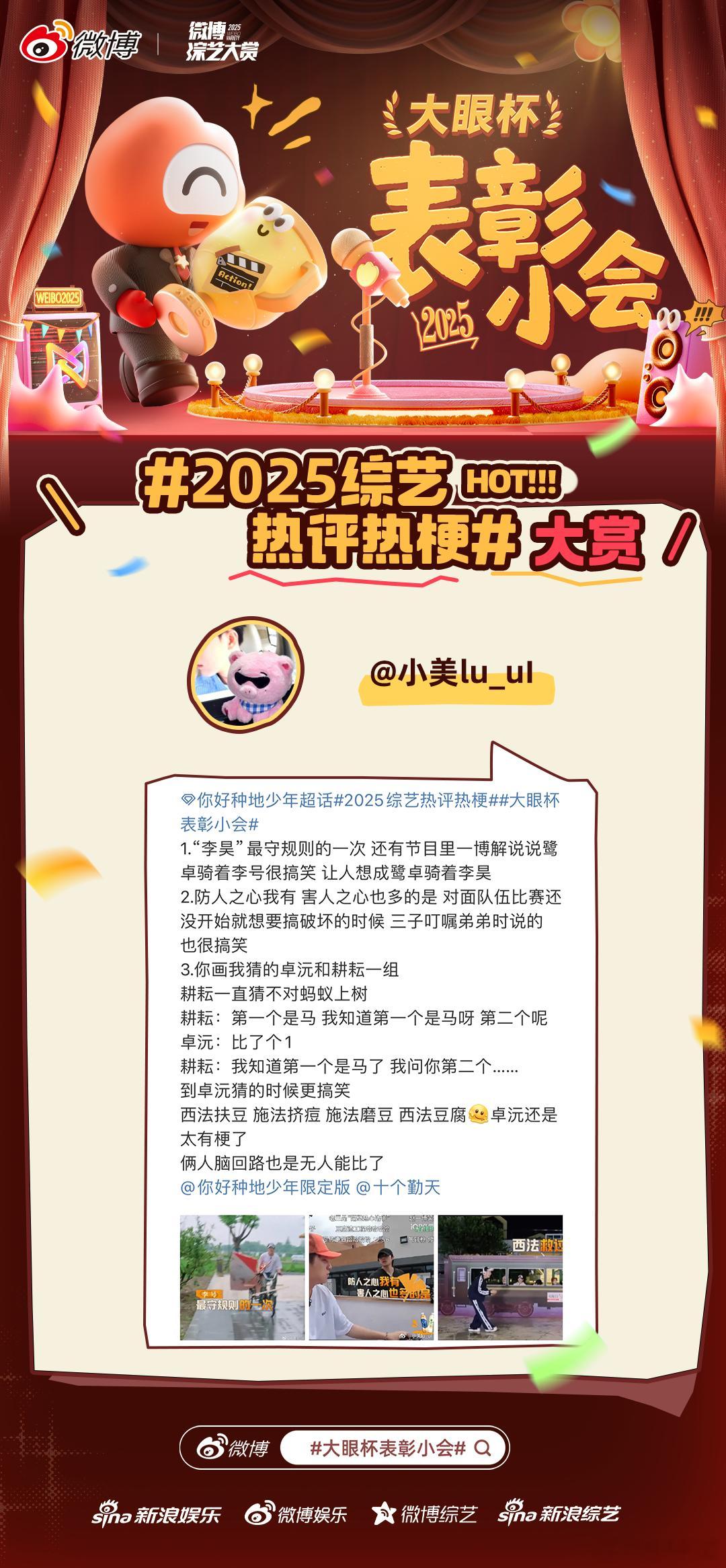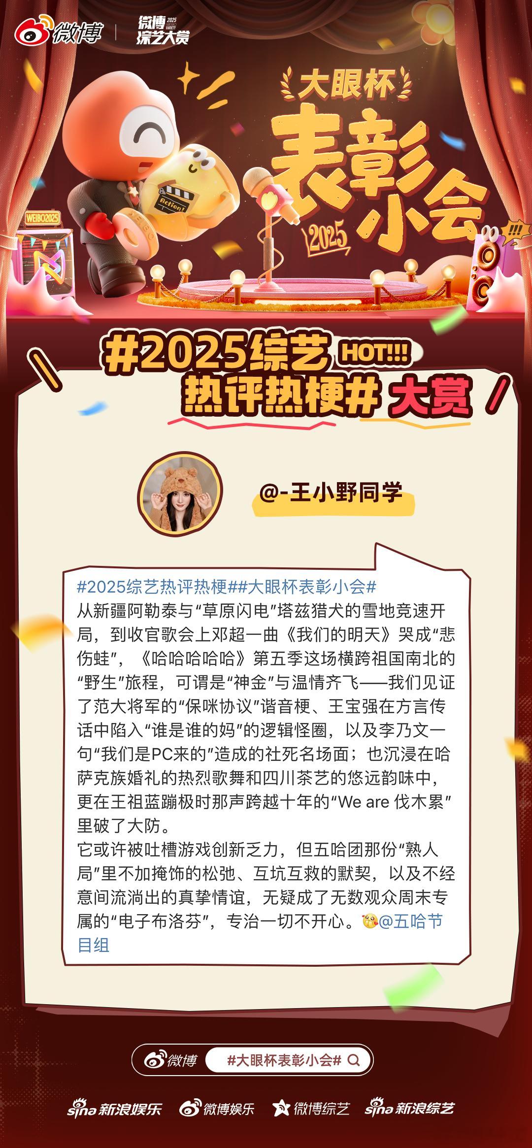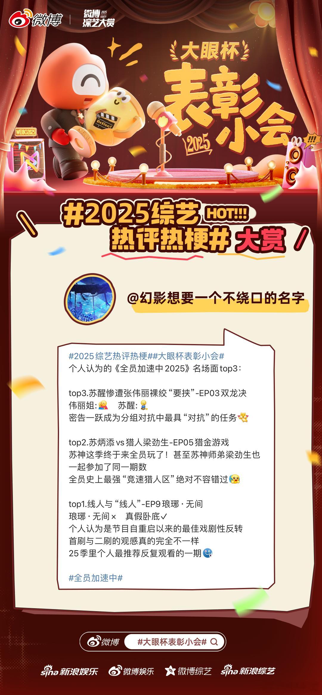 2025综艺热评热梗✨ 那些刷屏的金句、暖心热评、爆笑热梗,都是节目与观众的双向奔赴哪一句击中你的心?大眼杯表彰小会2025综艺大赏