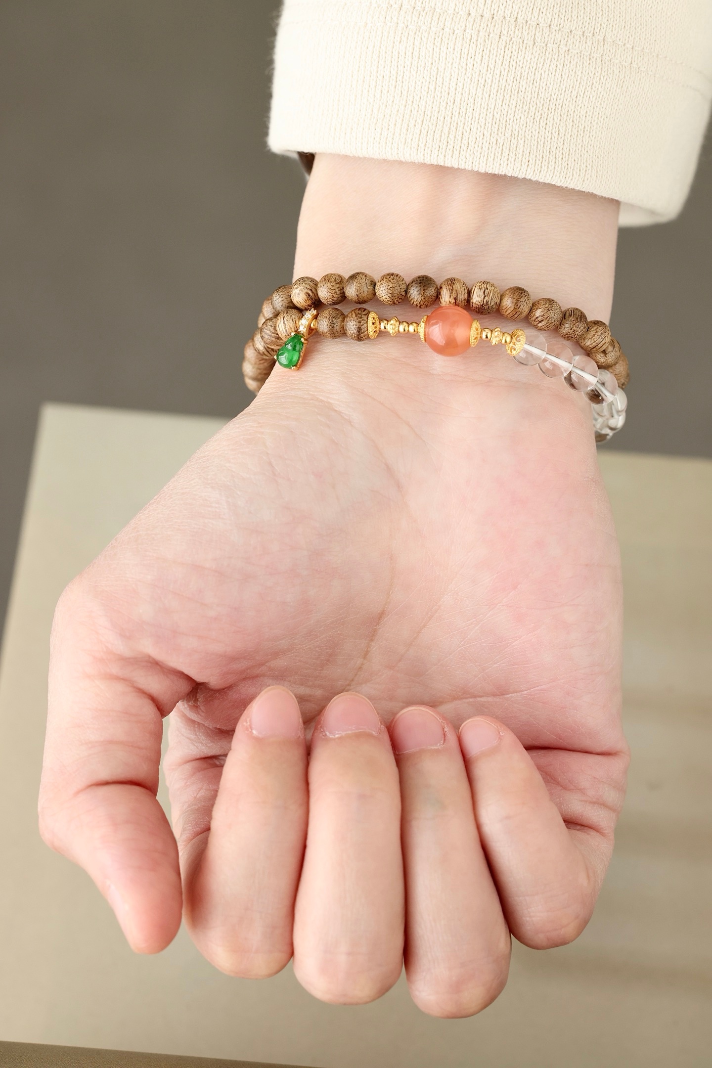 达拉干沉香 | 5mm diy手链油脂自然,香气淡雅,佩戴腕间,搭配白水晶、银鎏金配饰、玉石葫芦等,举手投足之间,时尚雅致。8.1g