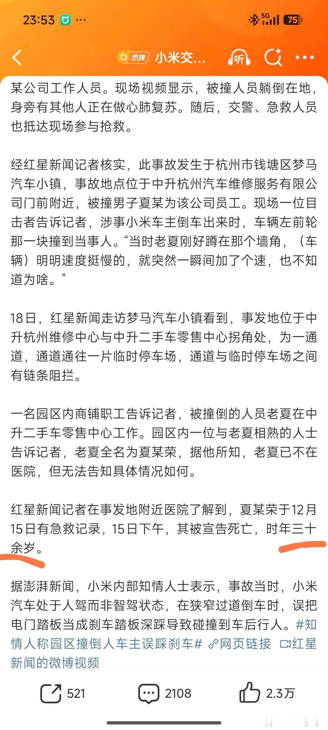 小米交付中心车祸被撞者已离世 哎.....