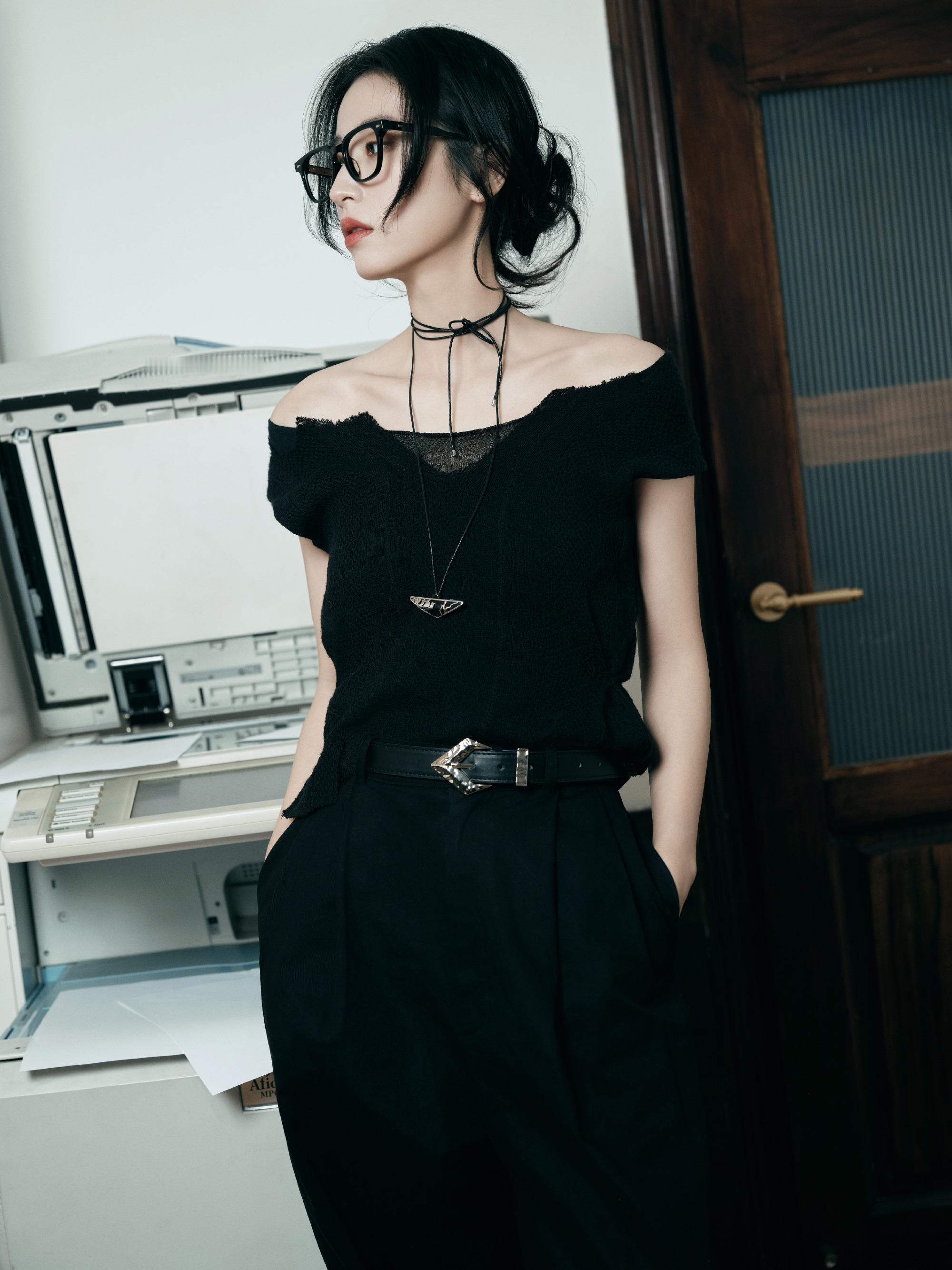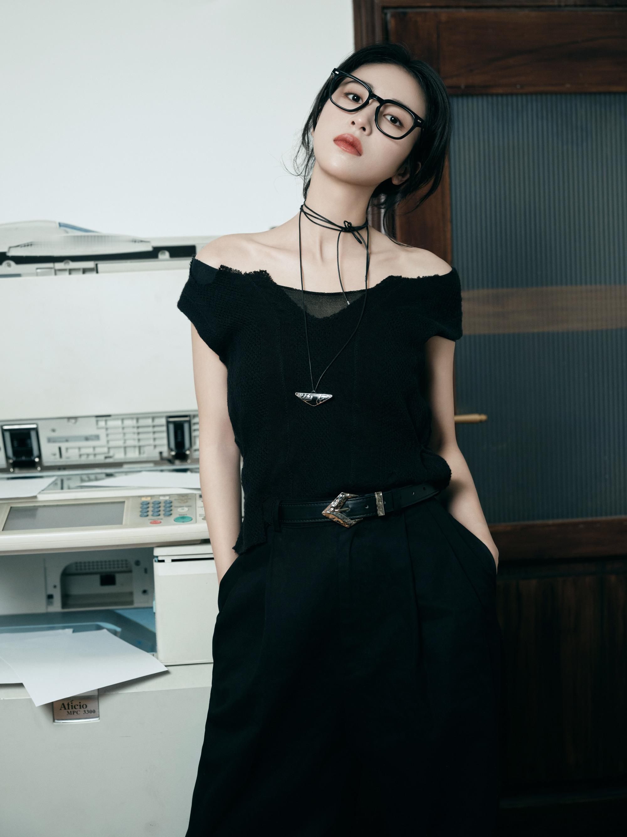 周雨彤:今天是一身黑色穿搭的职场眼镜姐姐。周雨彤
