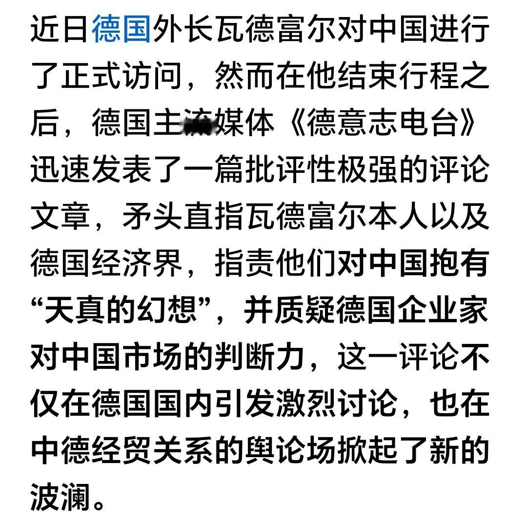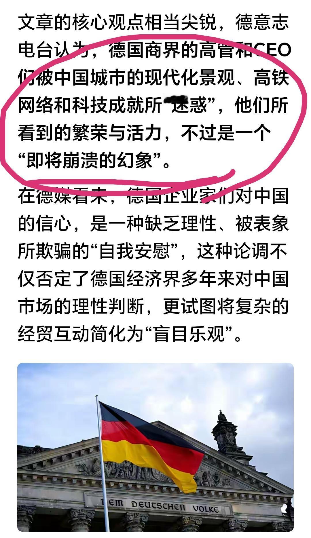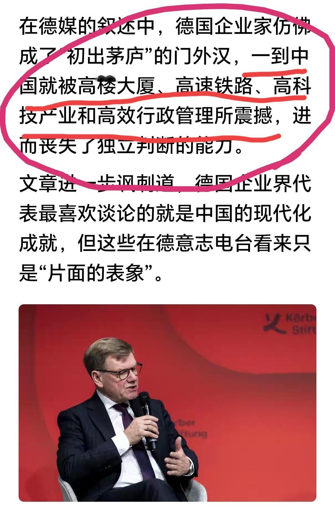 德国终于在21世纪又回到了他最初该有的位置了,就是一个乡巴佬,所以信息具有强烈的滞后性。中国崩溃论是美国10年前的腔调了现在居然才开始在德国🇩🇪流行。这信息也来得太晚了一点。 德国人的焦虑是可以理解的,毕竟他们的企业精英一来到中国就会被高楼大厦、高速铁路、高科技产业和高效的行政管理所震撼从而失去独立判断的能力,其实就是乡巴佬进城呗。 德国的基础——汽车工业正在被瓦解正在快速坍塌。德国也开始失去自信变得玻璃心。 这才是他们应该的位置。 点右上角关注我,我们一起去看这个魔幻的世界