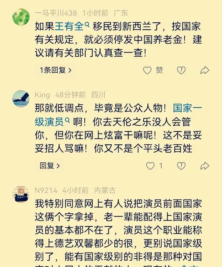 骂王全有“移民”的人,可能都犯了同一个错误。 错把《亮剑》里的丁伟,当成了现实里的王全有。他攥着中国护照,飞了十几个小时,只为见女儿一面。新西兰移民局数据显示,这类探亲签证去年批了上万份,多数父母待不到三个月。 你盯着他演的英雄,却忘了他也是个父亲。疫情期间耽搁的团聚,成了2023年最迫切的事。外交部早有定论:合法探亲,从来不是一道选择题。 角色是铁打的营盘,生活是流动的月光。他不需要活成你期待的雕像。 别让角色锁住一个人,要让事实照亮所有人。