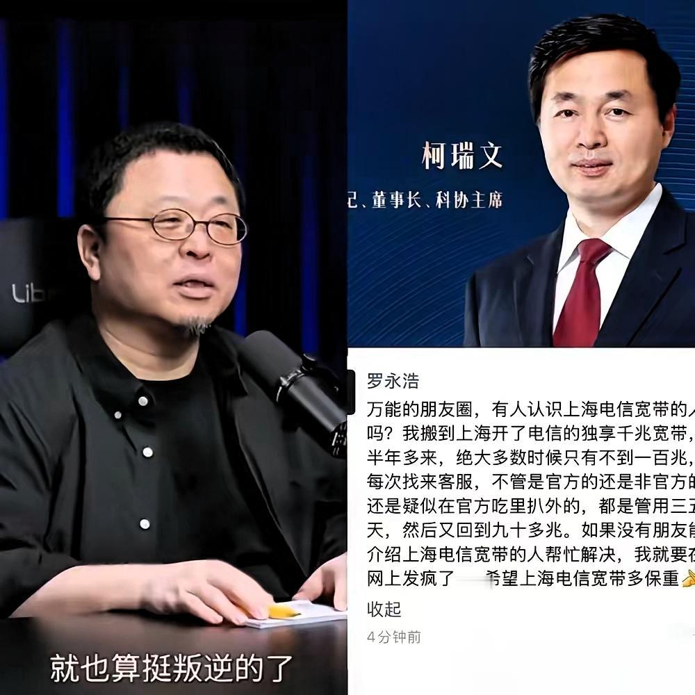 中国电信这次要头疼了!惹谁不好,偏偏撞上“维权战神”罗永浩,今晚董事长怕是要失眠到天亮! 老罗花大价钱办的独享千兆宽带,用了半年多实际速度连100兆都不到,找客服解决只管用三五天就反弹,气得他直言“再不解决就网上发疯”。 要知道,这可是硬刚过西门子、逼得西贝道歉的男人,专治各种巨头不服,维权从来都是拿证据说话。 更可气的是,电信只吹自己的宽带多给力,却压根不提醒用户光猫、路由器这些硬件得配套,出了问题就敷衍了事。 去年电信服务投诉量暴涨近一倍,可见这种服务乱象早不是个例,老罗这波怕是替千万用户出头了。 巨头的底气该来自服务,不是用户基数。 你觉得电信会乖乖解决问题,还是要等老罗“发疯”才重视?你遇到过宽带速度不达标的情况吗?