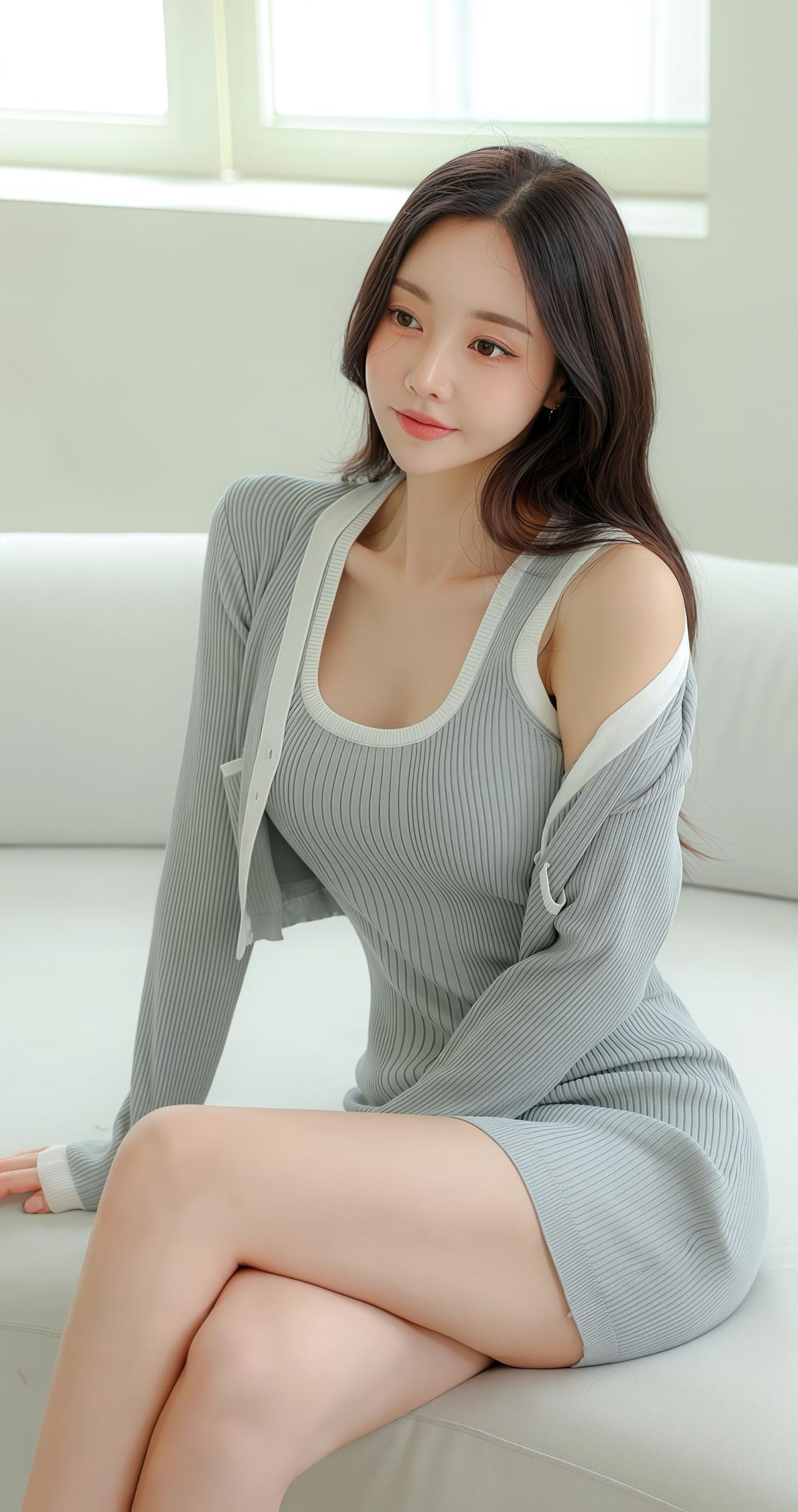 粉色连衣裙的甜美诱惑,白色砖墙背景下的优雅姿态。