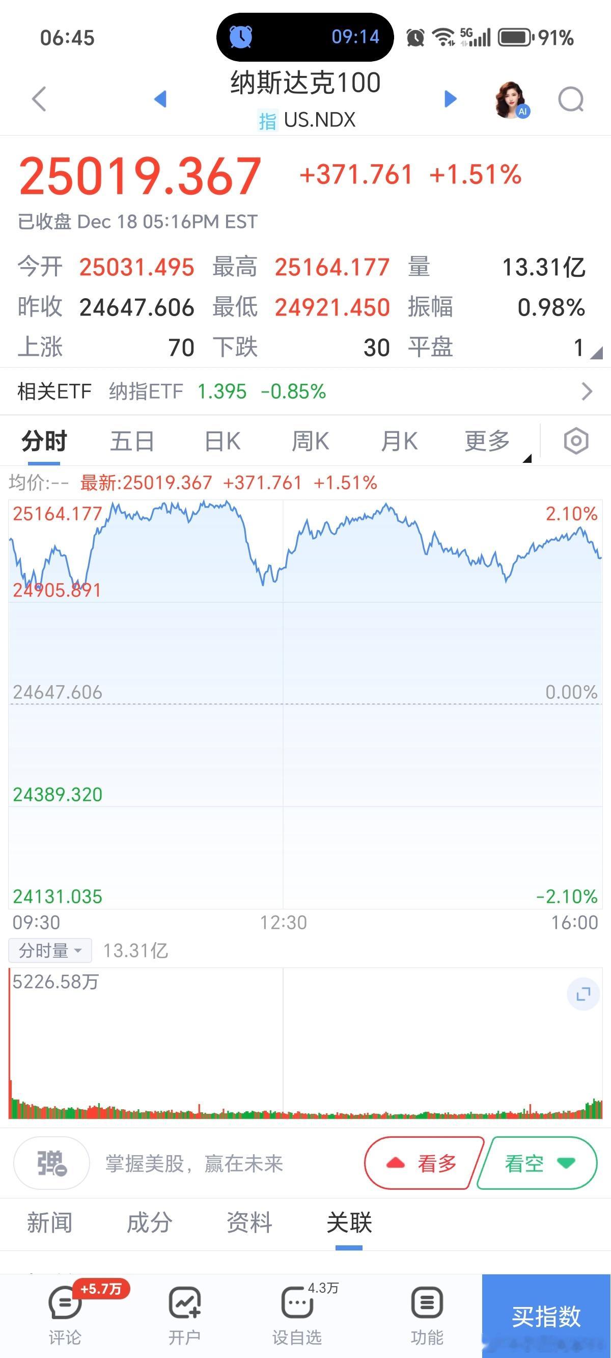 投资早上好,家人们起床啦,有空点赞互动,养铁粉/金粉/钻粉。纳指大涨,黄金小涨,A股期货小红,今天估计平开或者高开标普500:+0.79纳指100: +1.51生物科技:-0.75油气:-2.2原油:+0.3