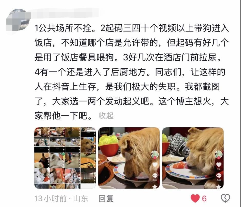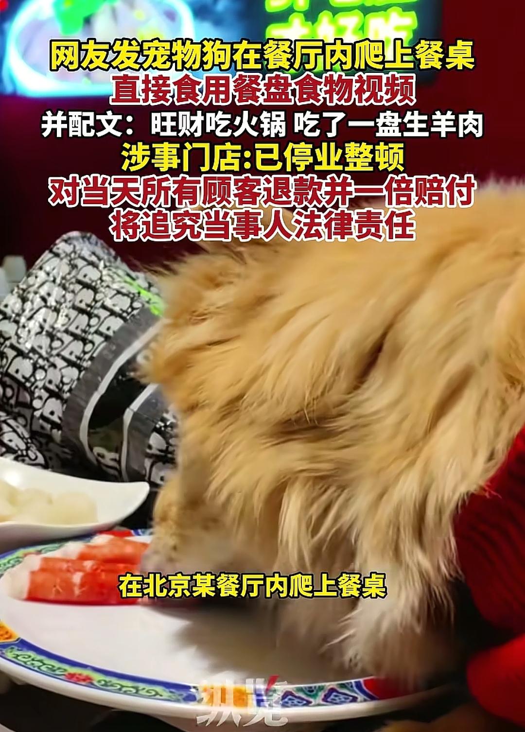 狗上桌吃碟子里的肉卷?狗主人不仅不制止,还拍视频炫耀碟子舔得干净!怎么会有这么自私的人,直接是没底线。餐厅要么严禁宠物进入,要么配备合规的宠物寄存设施,放任宠物上桌进食,是对所有食客健康的漠视。希望大家文明养狗,在家是你的心头宝,在外面他就是狗,要约束,不能对别人造成困扰和伤害。
