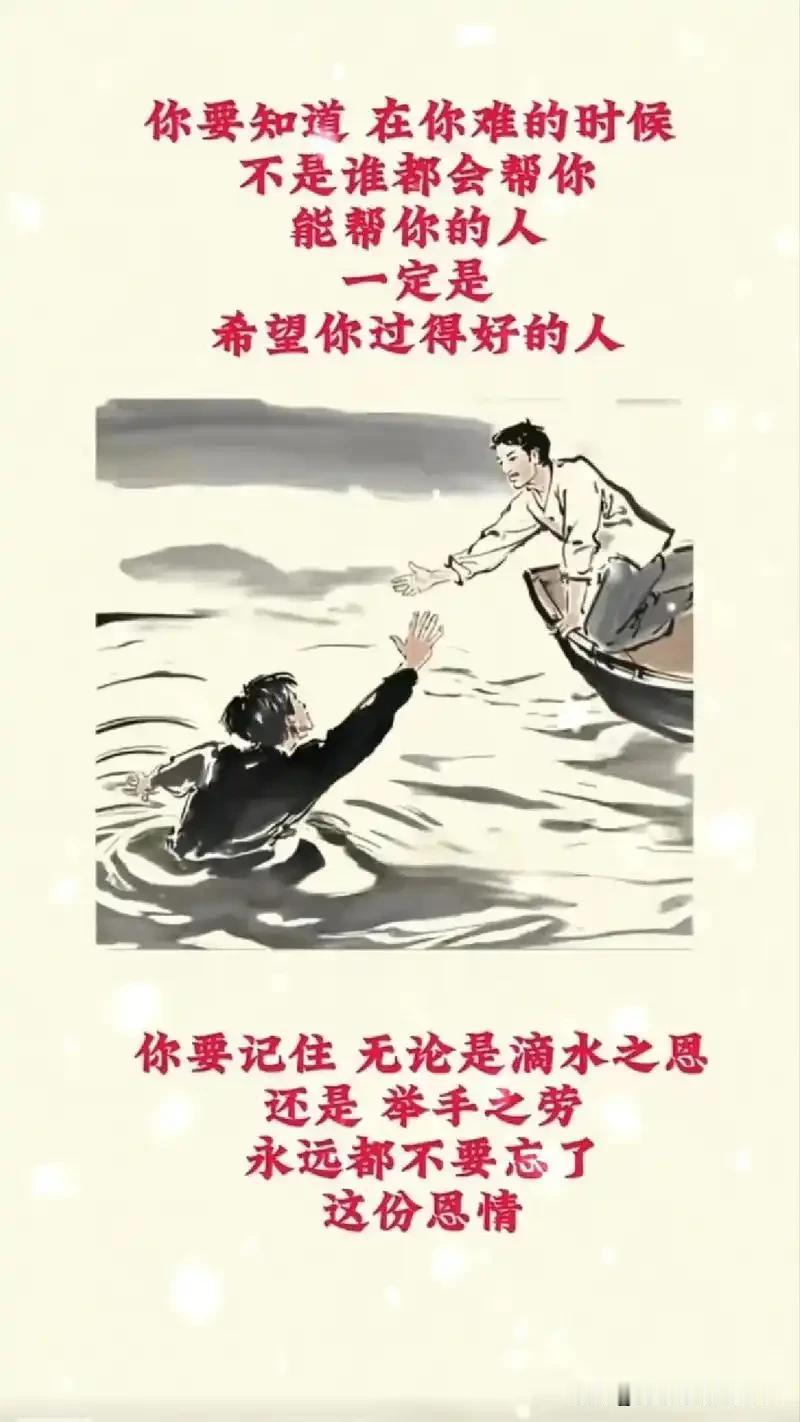“滴水之恩,当涌泉相报”,可有些人,偏生不懂这个理。 你掏心掏肺对他好,把能给的都给了。 他却觉得理所当然,连句真诚的感谢都没有。 需要你帮忙时,笑得比谁都热络 用不着你的时候,扭头就把你抛在脑后。这种人的心就像捂不热的石头,你付出再多,也换不来半点真心。 小区里的张阿姨就遇见过这种人,前几年邻居老王家孩子生病急用钱,她二话不说拿出攒了半辈子的养老钱。老王当时拍着胸脯说半年就还,转头却绝口不提还钱的事。 后来张阿姨老伴住院急需用钱,她找上门去,老王却一脸不耐烦,说这点钱至于这么催吗。话里话外的嫌弃,把张阿姨的心戳得千疮百孔。她这才明白,不是所有善意,都能换来对等的珍惜。 生活里这样的人并不少见,你帮他十次忙,有一次没帮到,就成了仇人。他们习惯了索取,把别人的善良当成可以肆意挥霍的资本。 你把他当成朋友,他把你当成工具;你把他放在心上,他把你踩在脚下。这样的人,从来不懂感恩二字怎么写,更不配拥有别人的真心。 有位作家说过,感恩是人性的底色,没了这个底色,再光鲜的外表也藏不住骨子里的冷漠。深以为然,一个不懂感恩的人,心里只装着自己,根本容不下别人的好。 别再傻傻地对不懂感恩的人掏心掏肺,你的善良要带点锋芒,你的真心要留给值得的人。毕竟,人心换人心,换不来就转身。 不值得的人,不必纠缠;不值得的事,不必挂怀。把你的好,留给那些懂得珍惜的人,日子才能过得温暖又明亮。 各位读者你们怎么看?欢迎在评论区讨论。