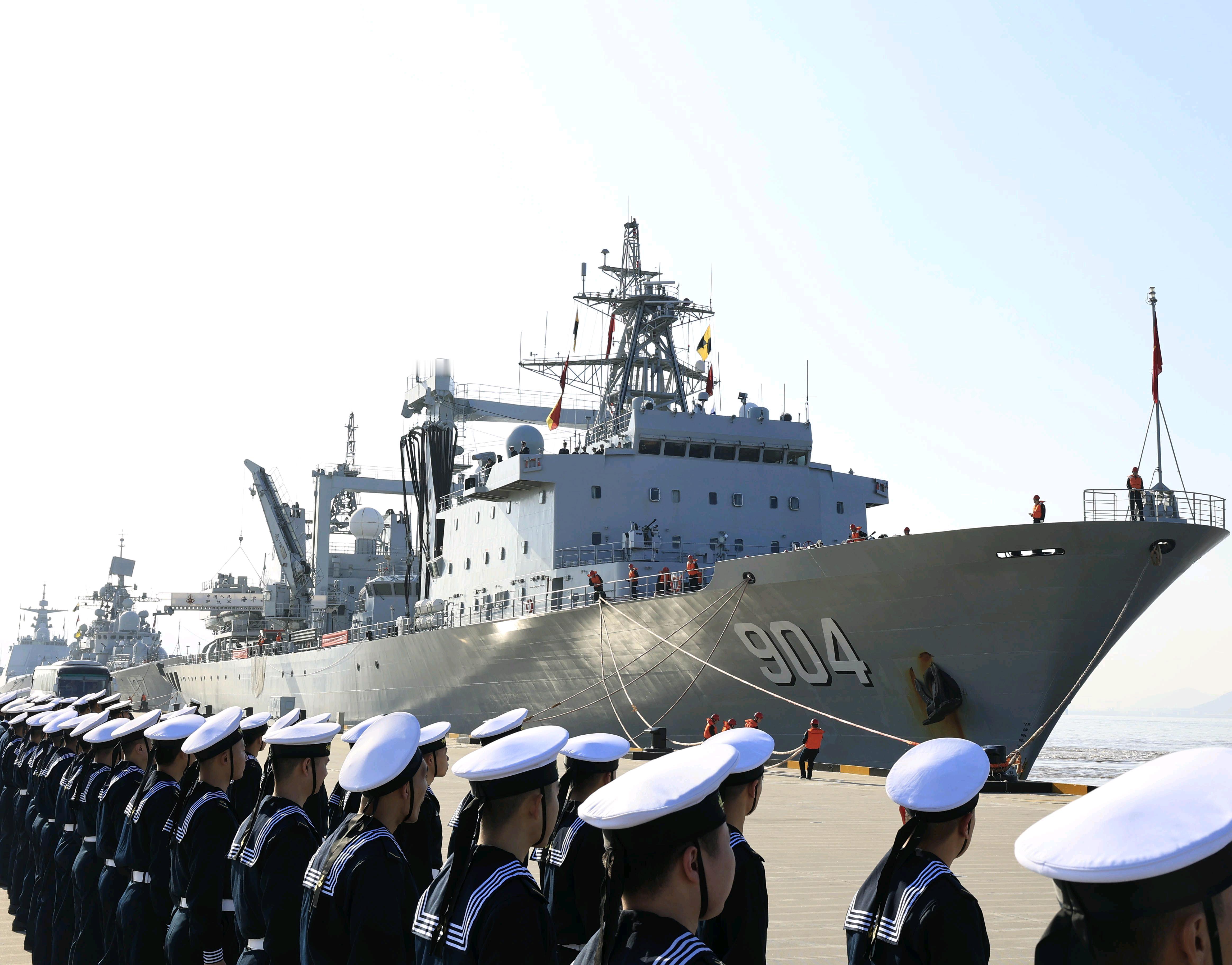 第47批护航编队凯旋现场图为正在靠泊码头的903A高邮湖舰后面停靠的是“现代级”福州舰、一艘新批次改进型052D(应该是达州舰吧)烽火问鼎计划中国海军