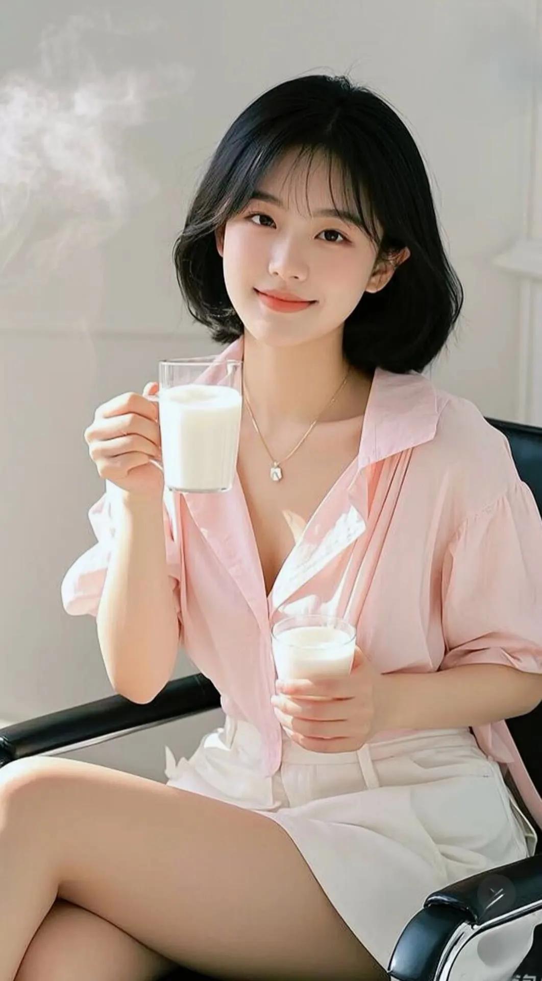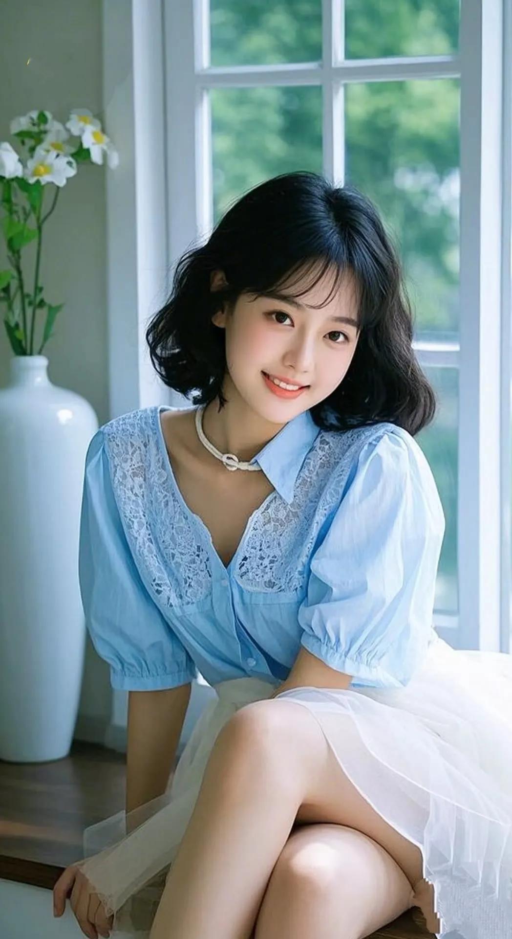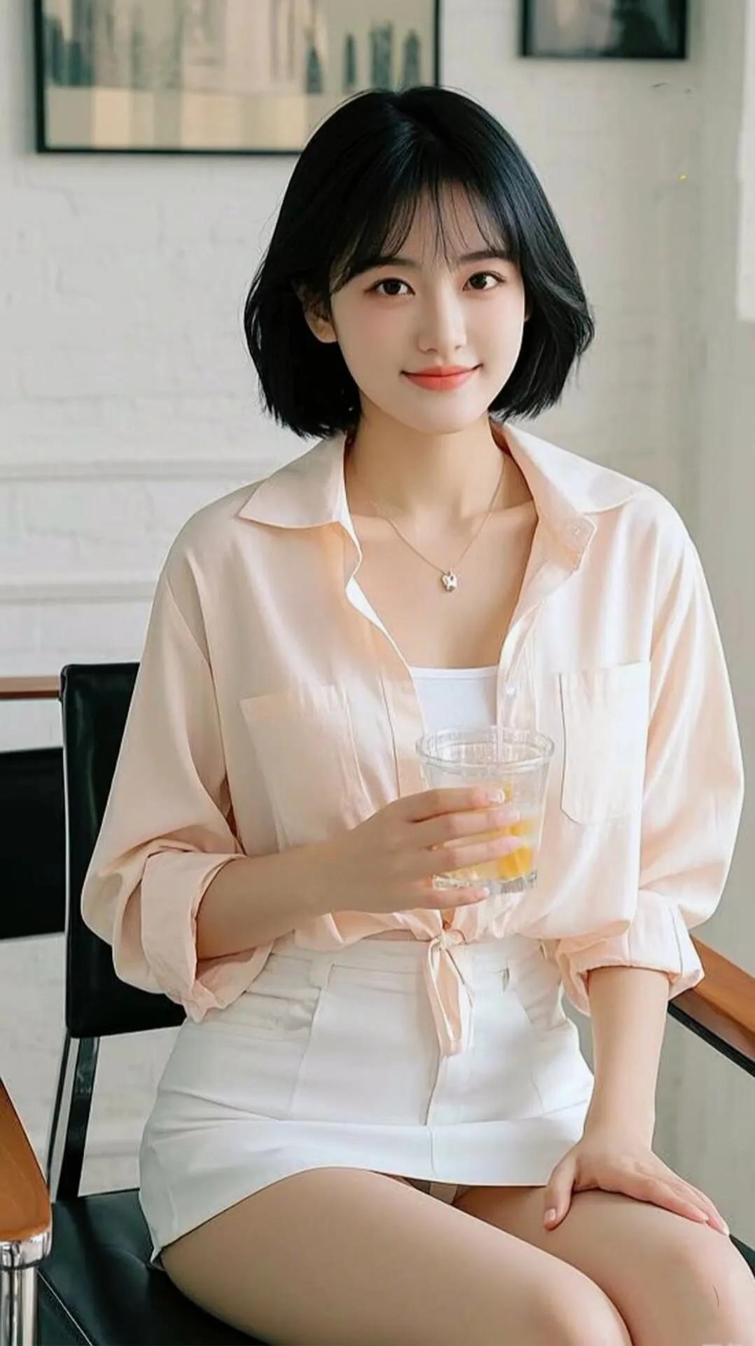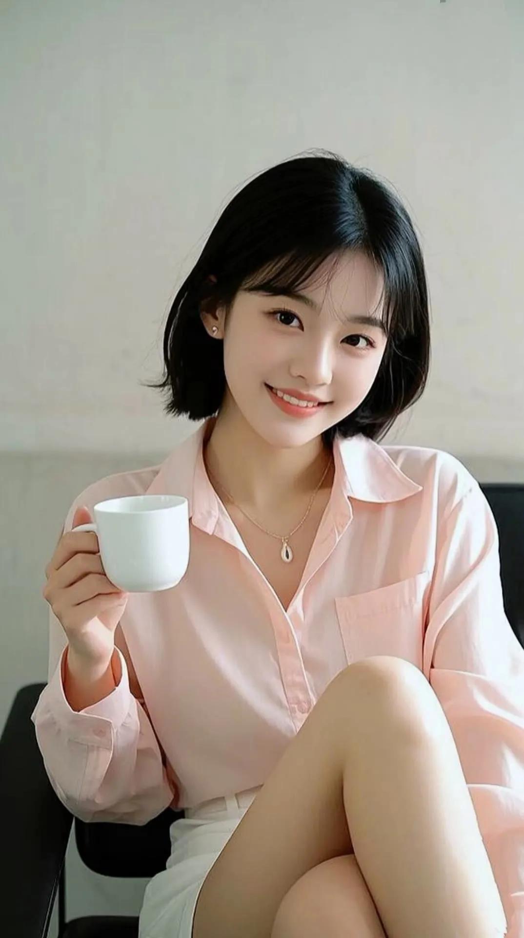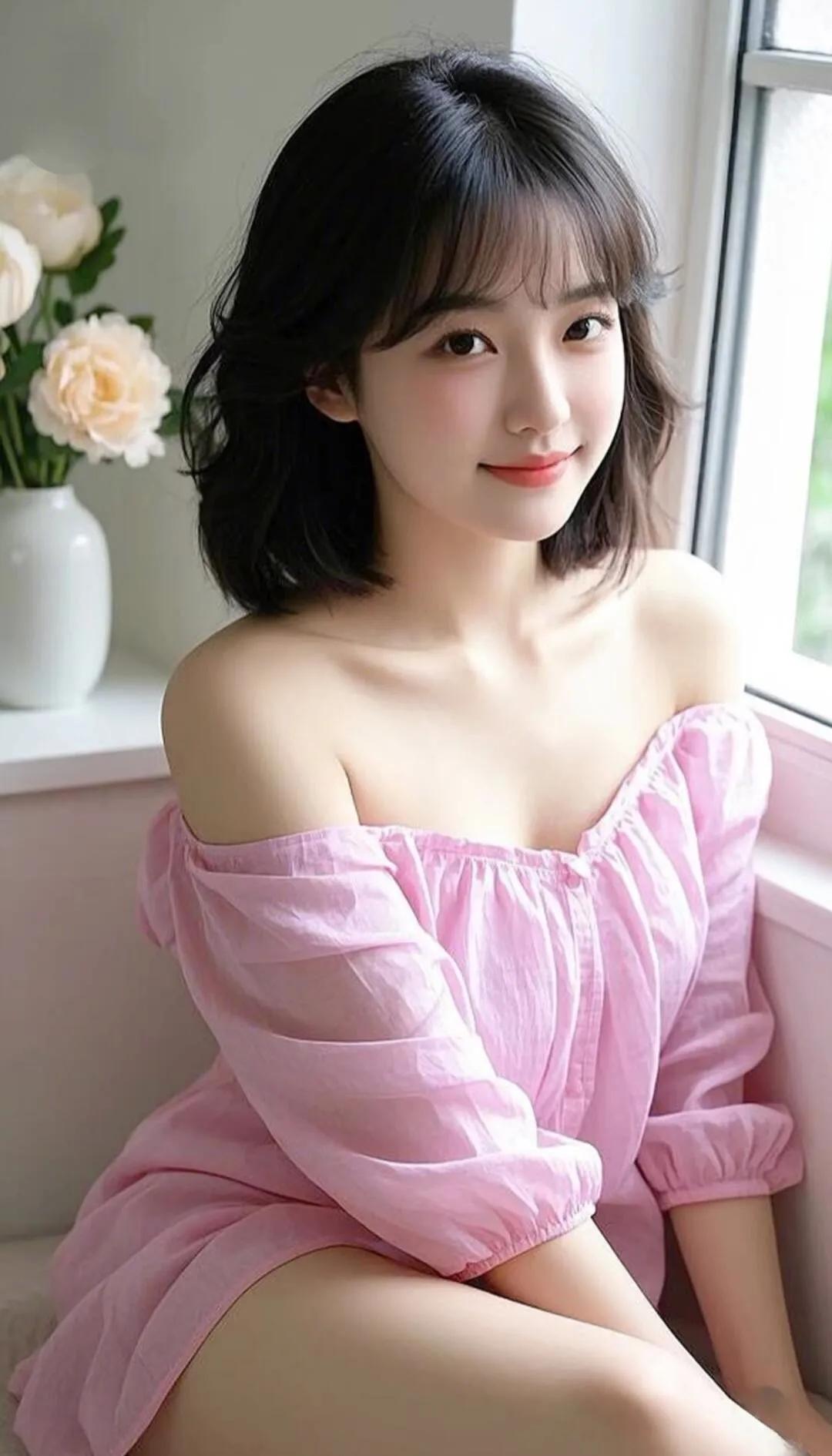 温柔甜美的少女,粉色毛衣搭配白色衬衫,笑容甜美,让人心动不已!💖💕💖