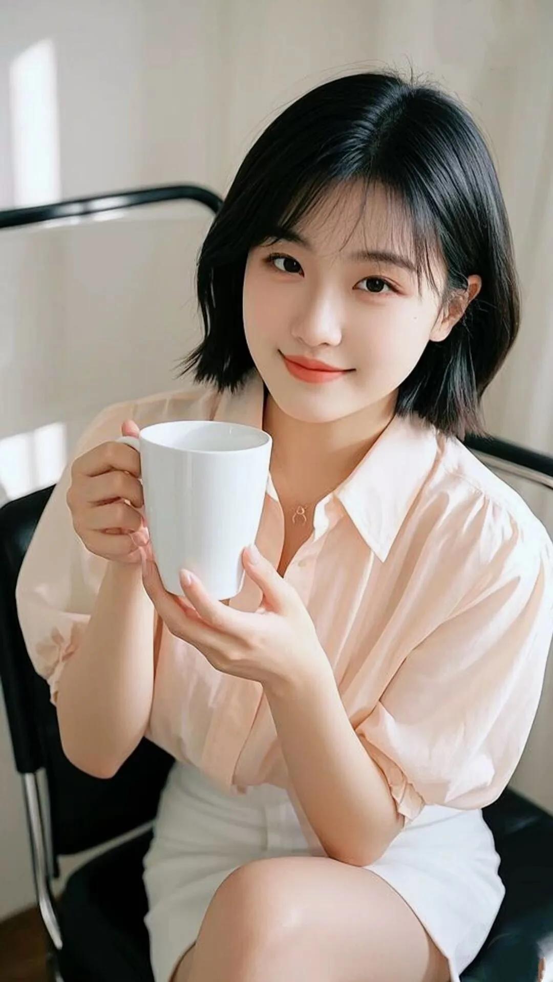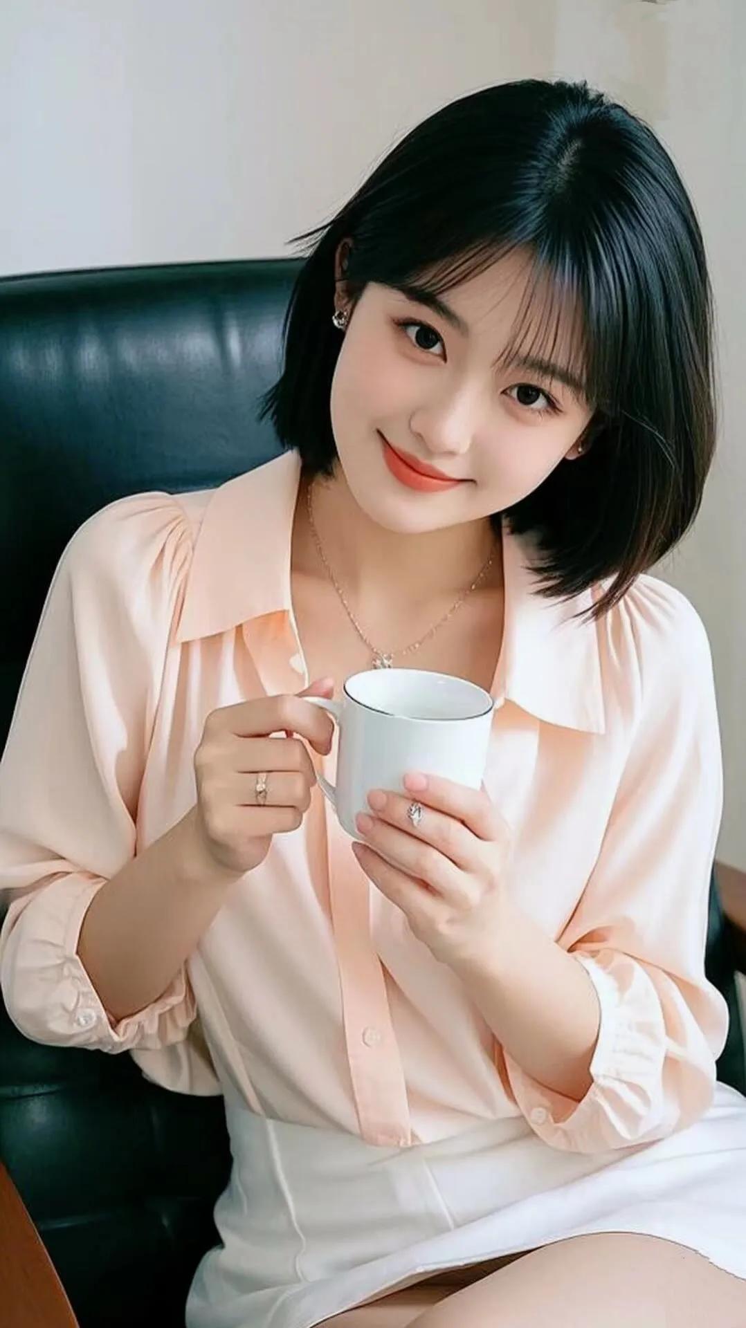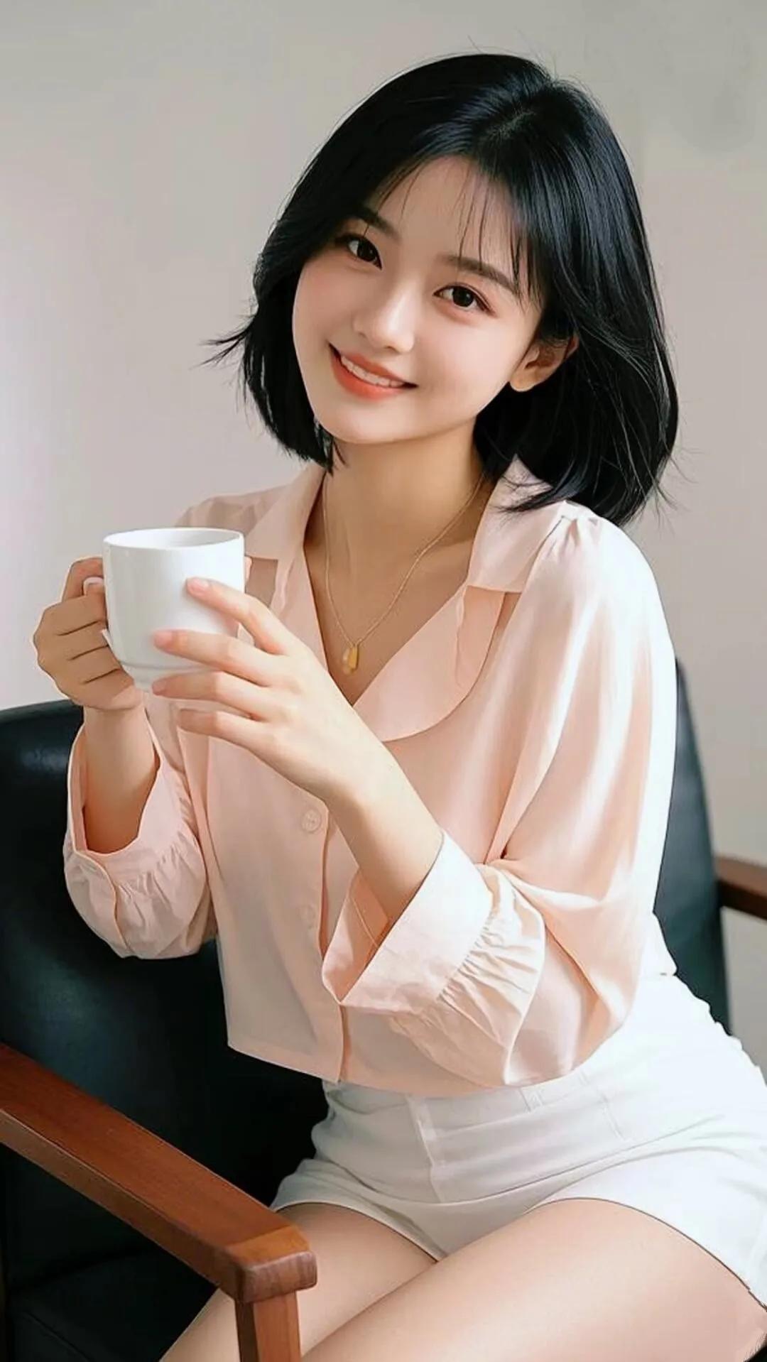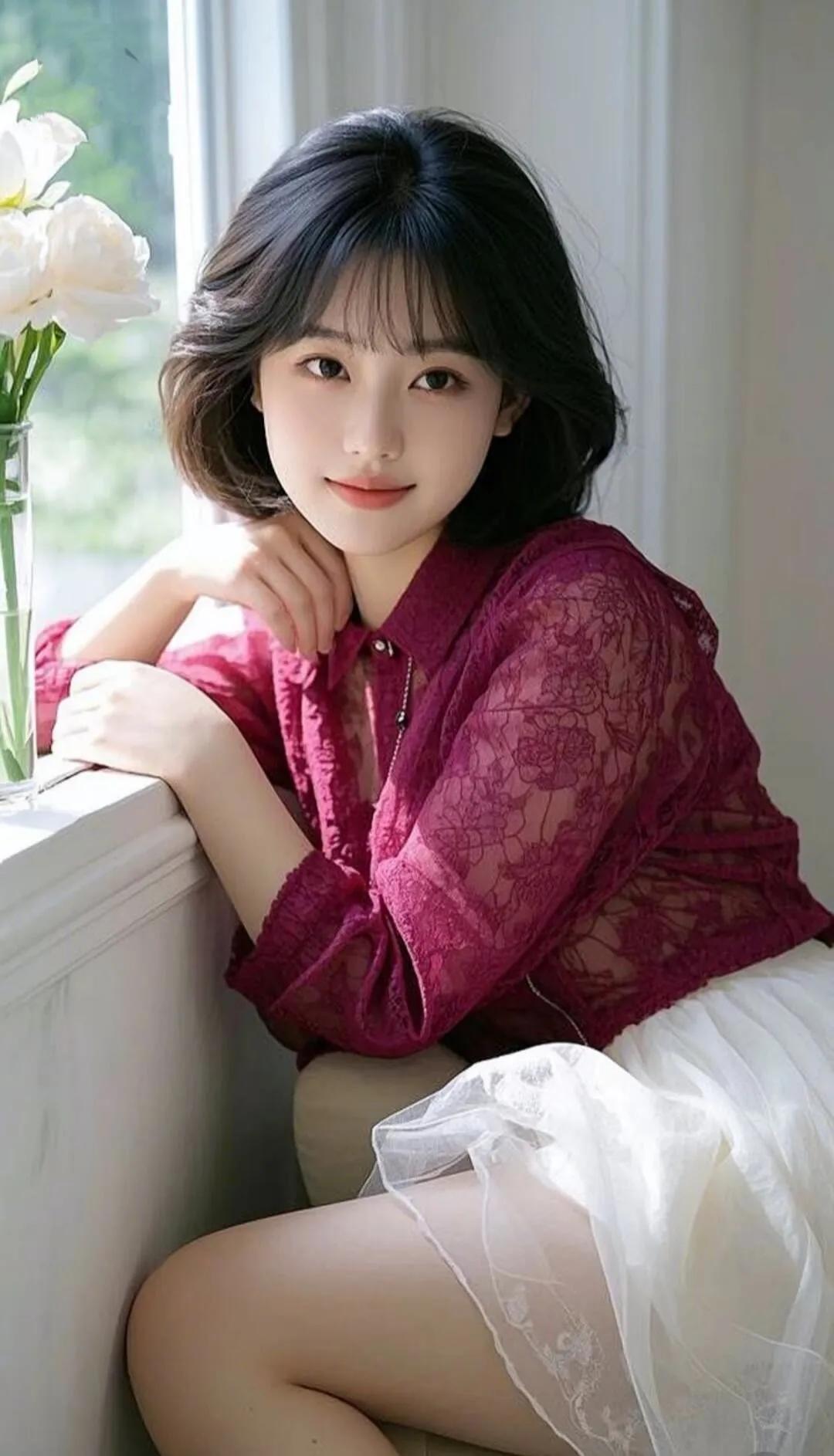 温柔甜美的少女,粉色毛衣搭配白色衬衫,笑容甜美,让人心动不已!💖💕💖