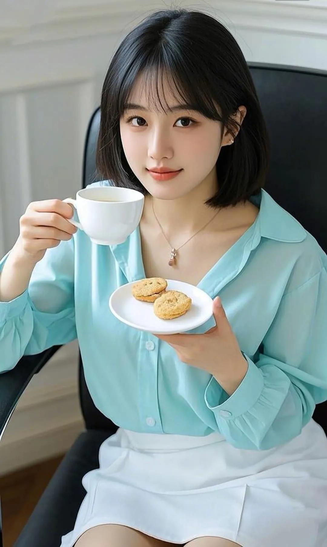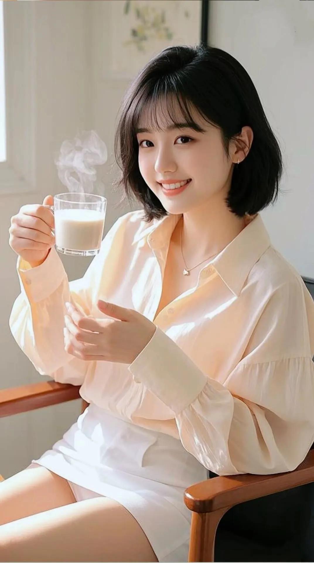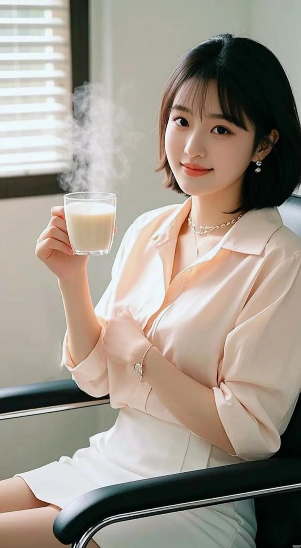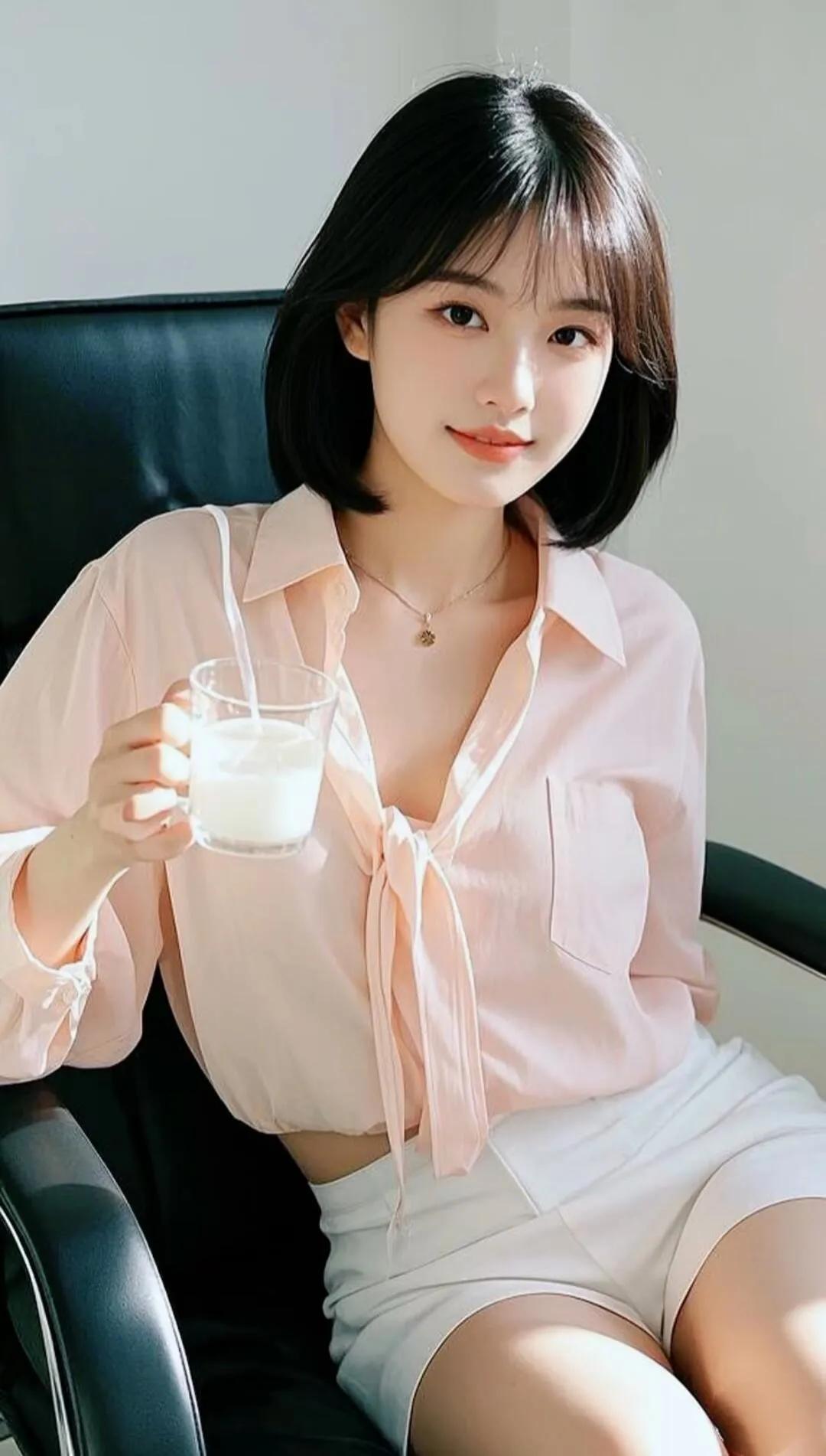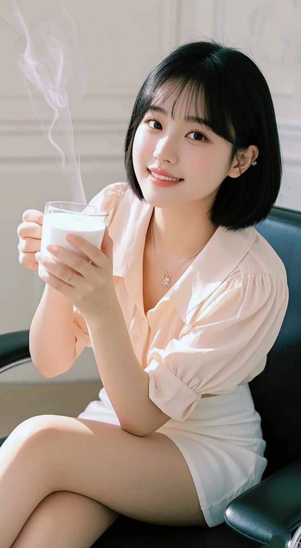温柔甜美的少女,粉色毛衣搭配白色衬衫,笑容甜美,让人心动不已!💖💕💖