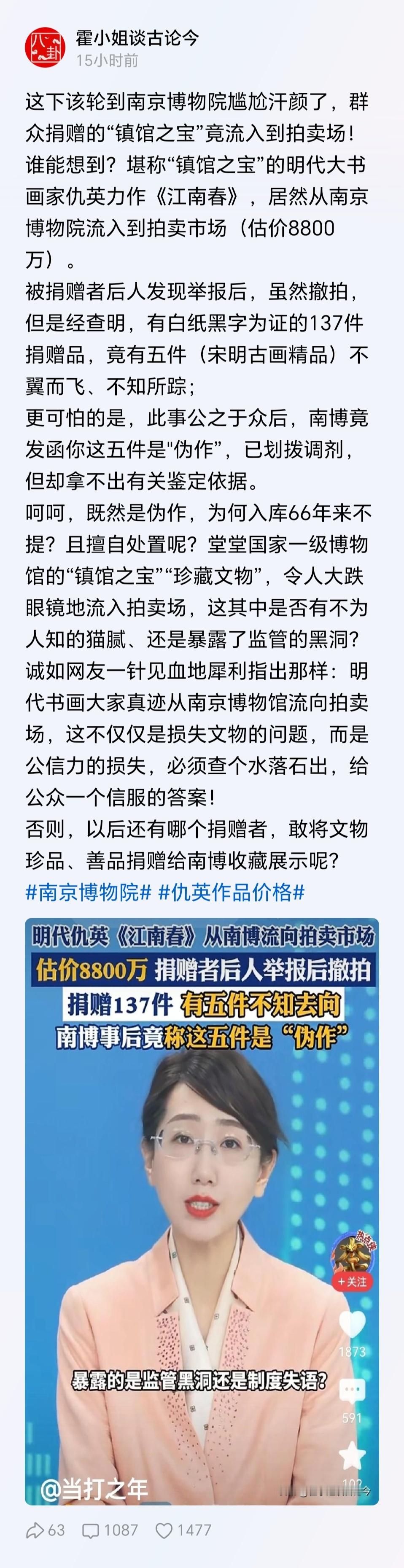 南京博物院倒卖文物,这个事情肯定不能轻轻放下!《江南春》已经可以证明是从南京博