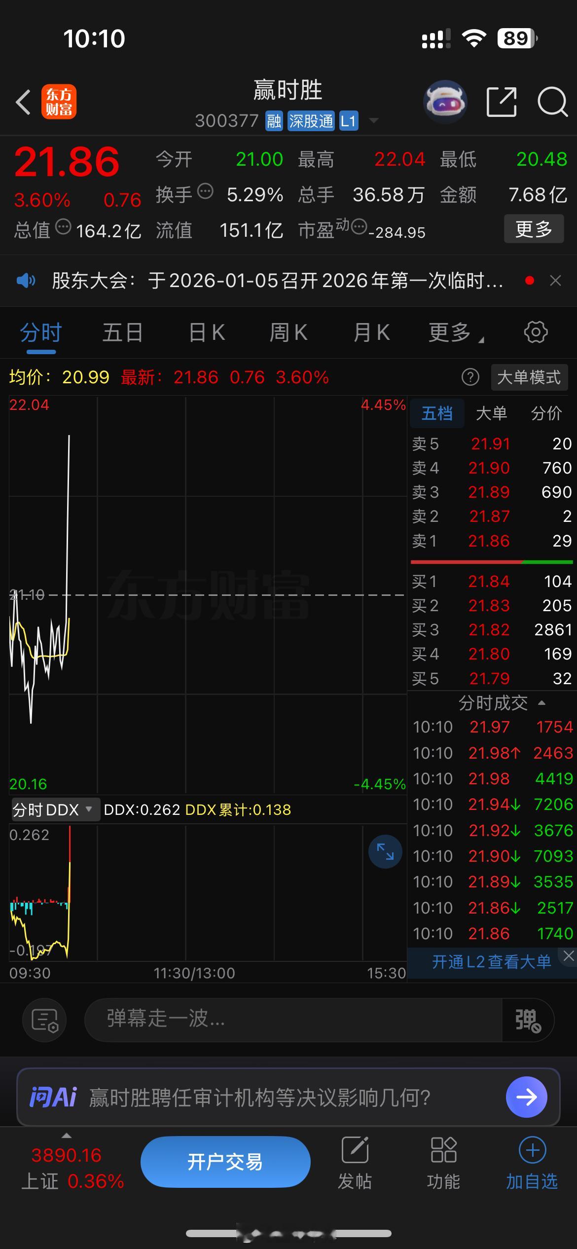 留意赢时胜这一波的回升,有机会就要大胆把握$赢时胜 sz300377$