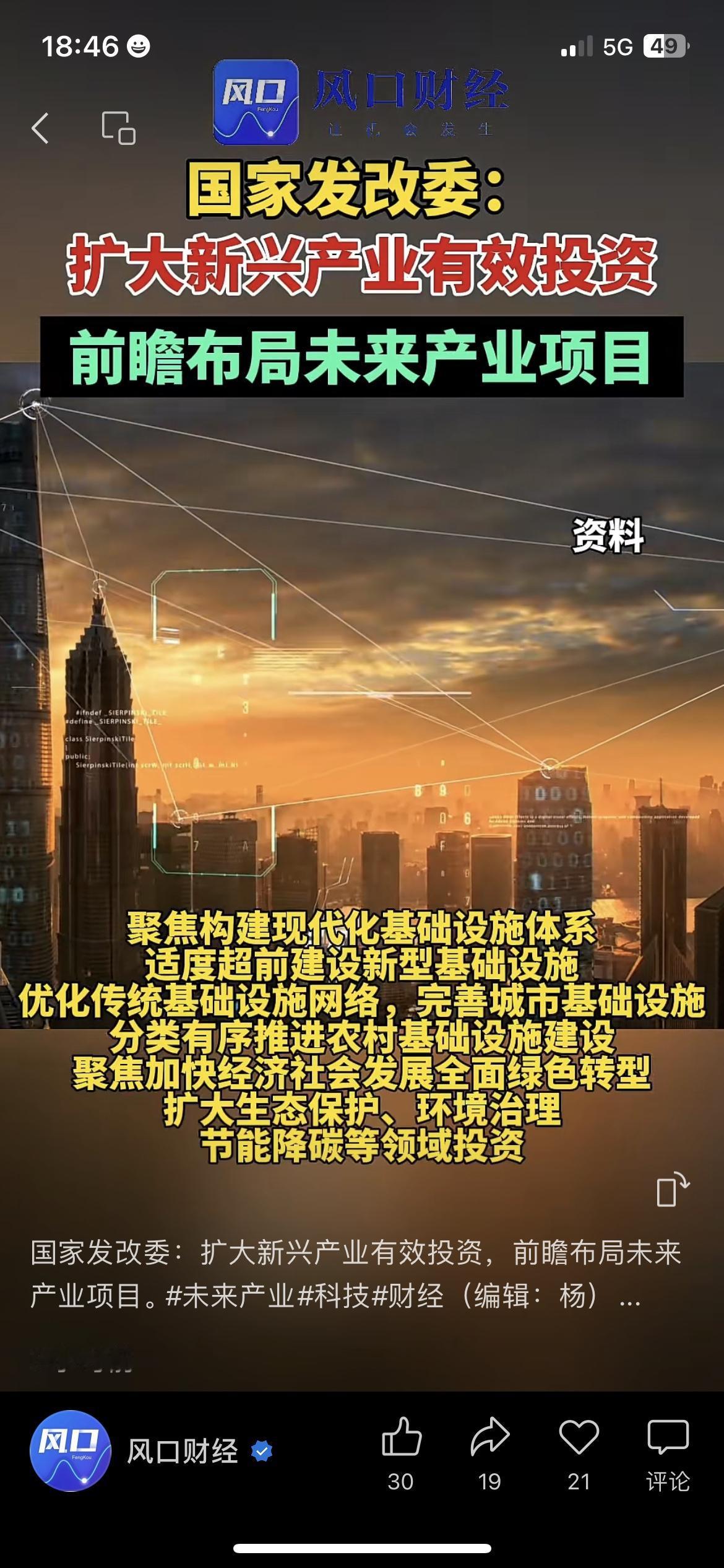 🔥发改委放大招!新兴产业迎投资潮,创业者迎来新机会 做新能源创业的小吴看到政策,连夜改了商业计划书:终于有政策托底,敢加大投入了。 发改委明确要扩大新兴产业投资,超前布局未来产业,还会升级传统基建、推进绿色转型。 园区招商经理透露,近期新能源、人工智能项目咨询量暴涨,政策红利正在落地。 新基建建好后,农村物流、城市配套都会更完善,普通人的生活也能跟着沾光。 你最看好哪个新兴产业的投资前景? 产业未来展望