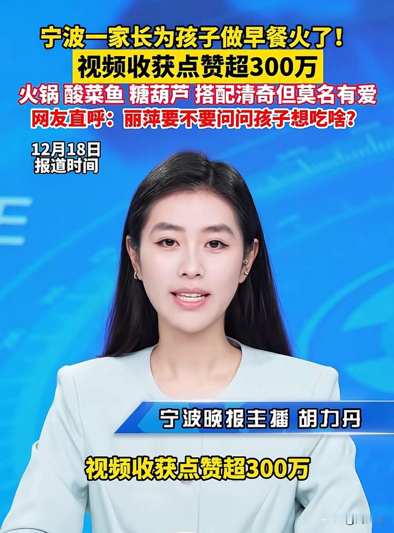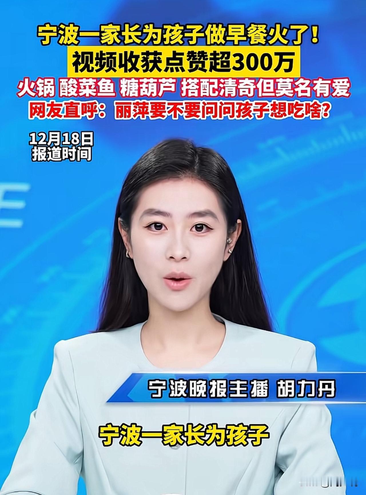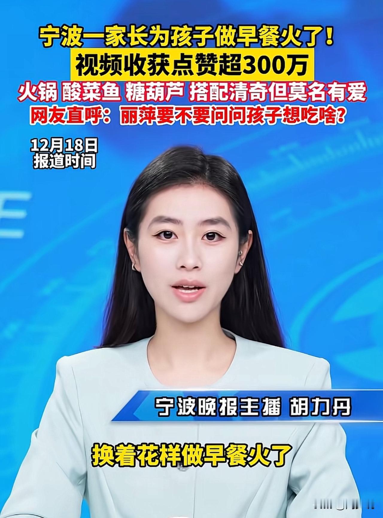 #宁波一家长为孩子做早餐火了#“真没想到为孩子做早餐火了!”宁波一位家长给孩子做早餐视频爆火,点赞量直冲300万!别人早餐都是粥粉面,这位家长直接给孩子安排火锅、酸菜鱼,还搭配一串酸甜糖葫芦,清奇搭配让人直呼“脑洞大开”。 不少网友纷纷表示:“太有爱了!比起千篇一律的鸡蛋牛奶,这种充满惊喜的早餐更能治愈上学的疲惫!” 周少认为这份“不走寻常路”的早餐,藏着最戳人的教育智慧。比起纠结营养配比的标准答案,家长更懂用“投其所好”的方式传递爱意。 在教育内卷的当下,很多父母忙着给孩子报班、做规划,却忘了孩子的快乐其实很简单。一顿脑洞大开的早餐,不仅填饱了肚子,更填满了孩子的安全感。这种尊重孩子喜好的陪伴,才是家庭教育里最珍贵的底色。#寻美三湘# #长沙新朋友#