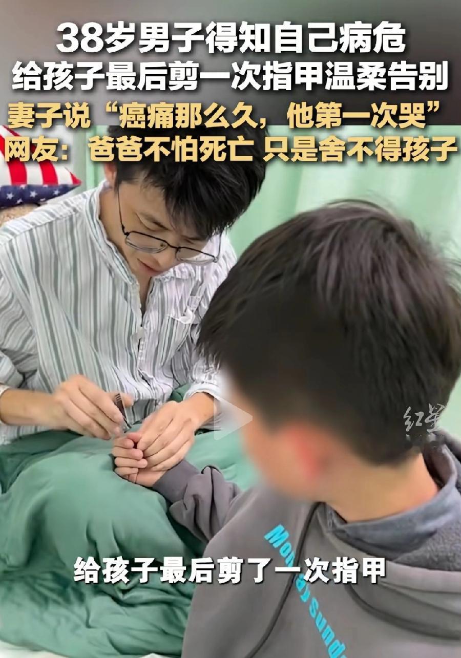 38岁病危父亲给孩子剪指甲告别,看了评论区,大家都被男子温柔举动感动了,生活平常点滴,最打动人心!对于正常人来说看似小事,此时此景却是人间最珍贵的,很多人回忆自己父母、亲人去世情景,感叹生活不易、人生苦短!特别是80后,就像这位父亲87年的,正当英年,上有老下有小,承担了生活的巨大压力,可能也是患病原因! 希望大家千万不要为了挣钱透支了健康,健康就是最大的财富,知足常乐,一家人团圆就是美满、幸福!