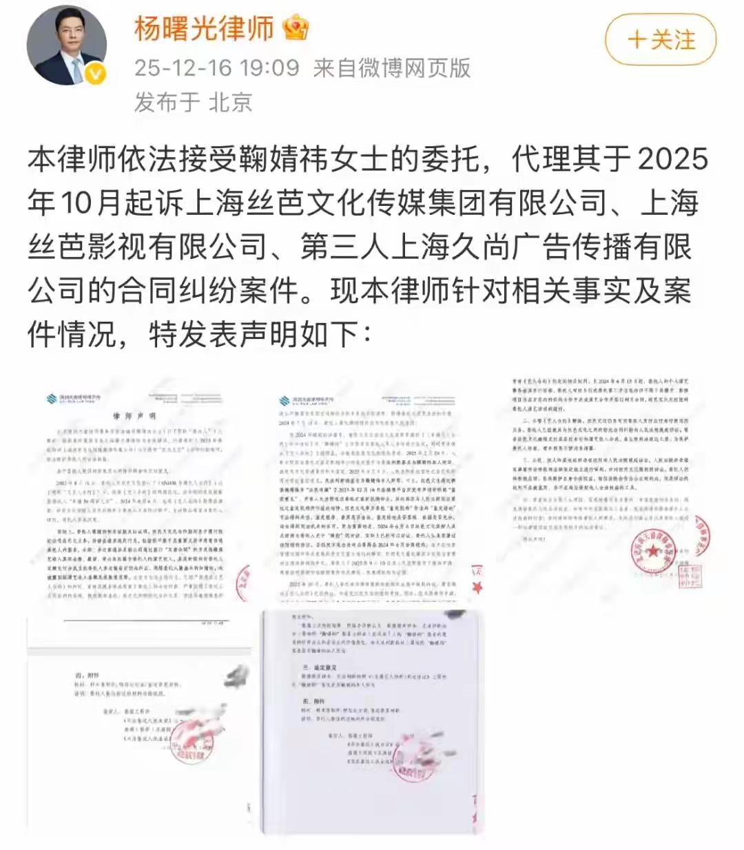 月薪25万还翻脸?鞠婧祎和丝芭传媒的合约大战,本质是文娱圈长约困局的缩影! 一边说7年给了1.39亿、送江景房房车,一边否认补充协议、指控伪造签名,双方各晒鉴定报告互撕。核心矛盾早就不是“谁对谁错”,而是成名艺人想独立,经纪公司不愿放手。 互联网打破了资源壁垒,艺人自己也能对接资源,传统经纪公司的价值在稀释。可长约绑定、收入分配这些老问题没解决,自然容易撕破脸。 这场纠纷里,签名真假终会有司法定论,但文娱圈的合约模式早该跟着行业变了。你觉得艺人该早早签长约求保障,还是红了再谈自由更靠谱?鞠婧祎 鞠婧祎