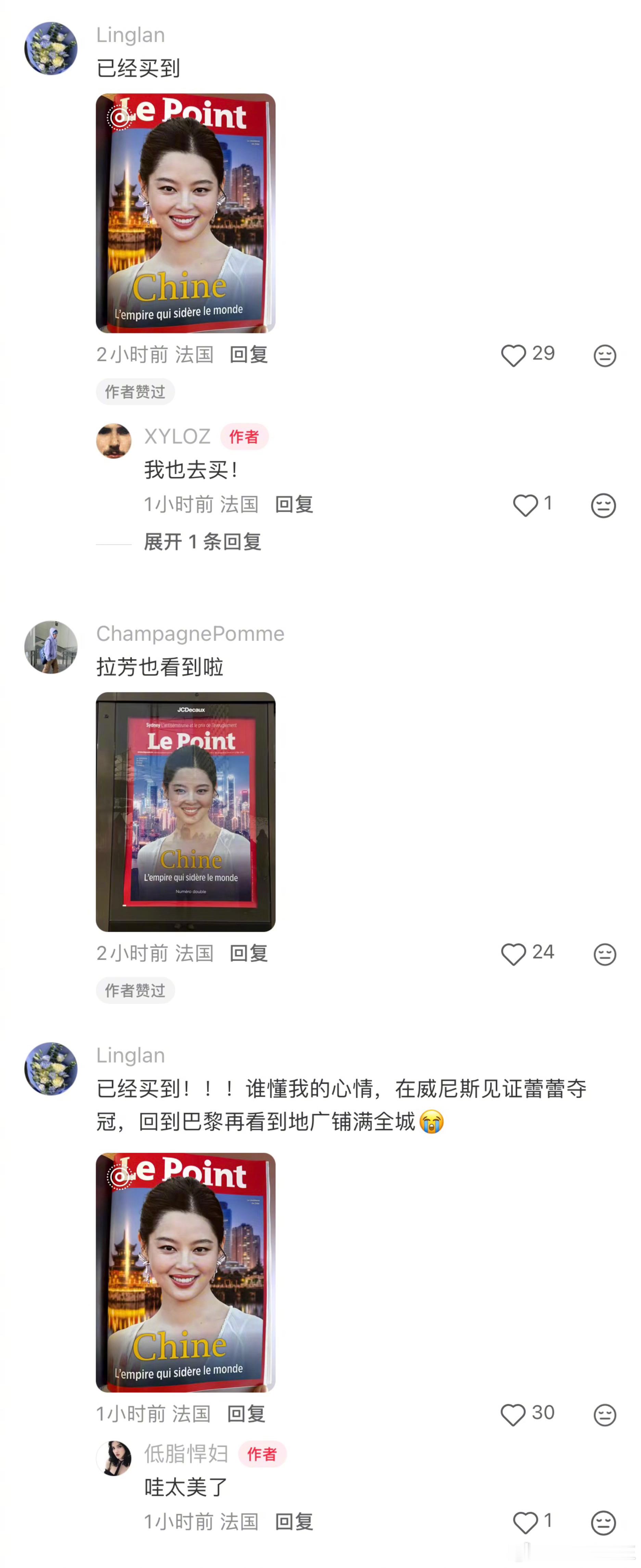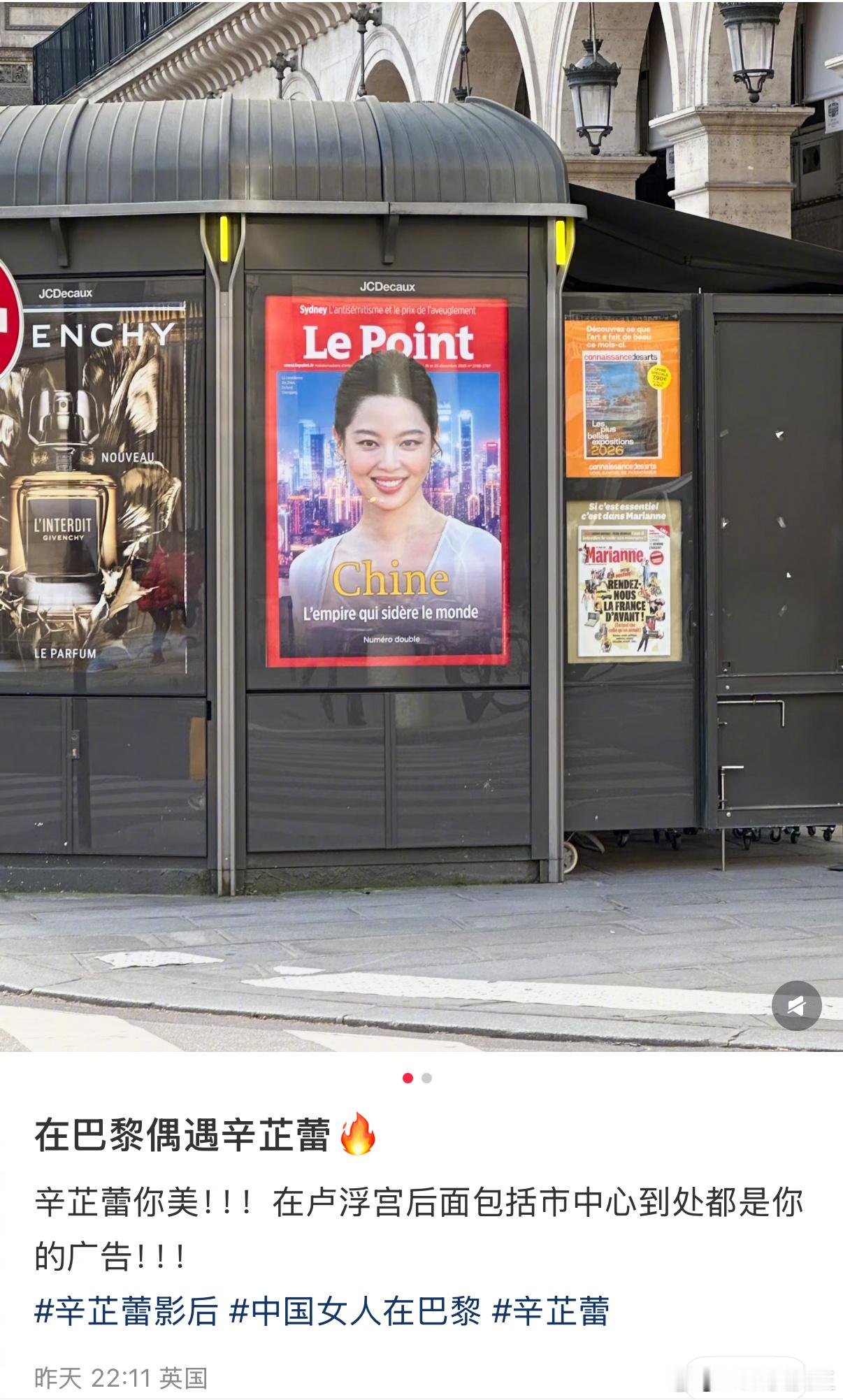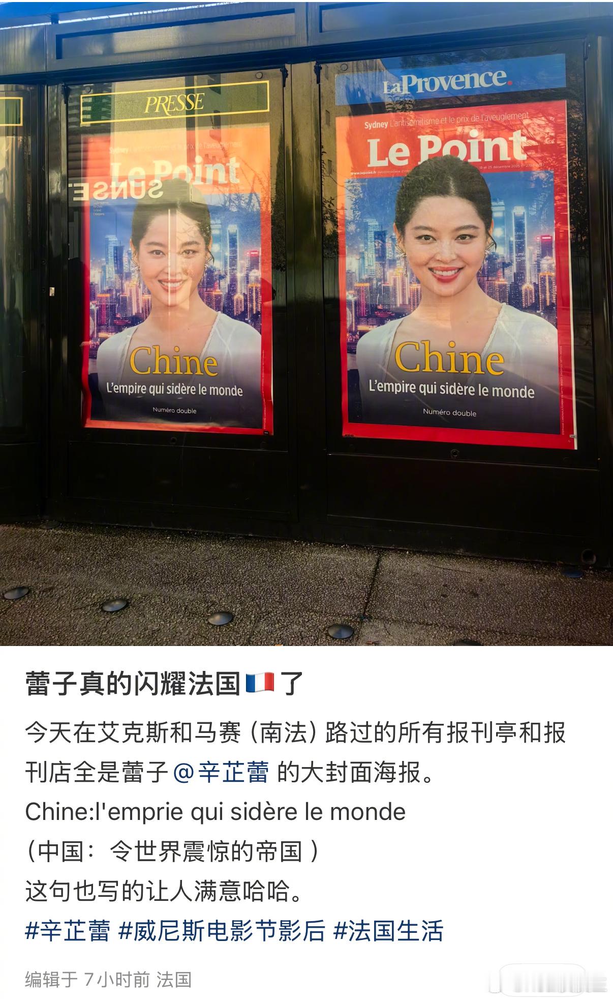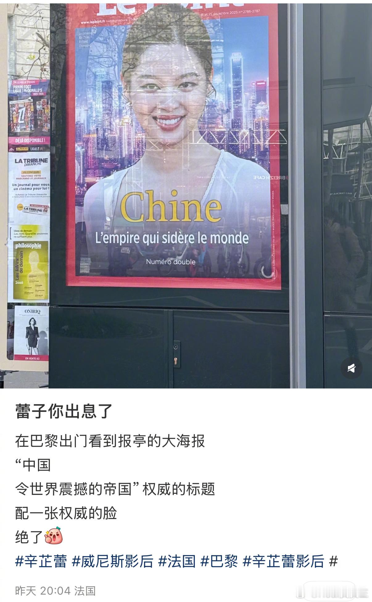 辛芷蕾登法国新闻周刊《Le Point》封面,这本是法国著名的新闻时事周刊杂志,也是法国三大主要新闻周刊之一,这本杂志也在巴黎街头全线投放。