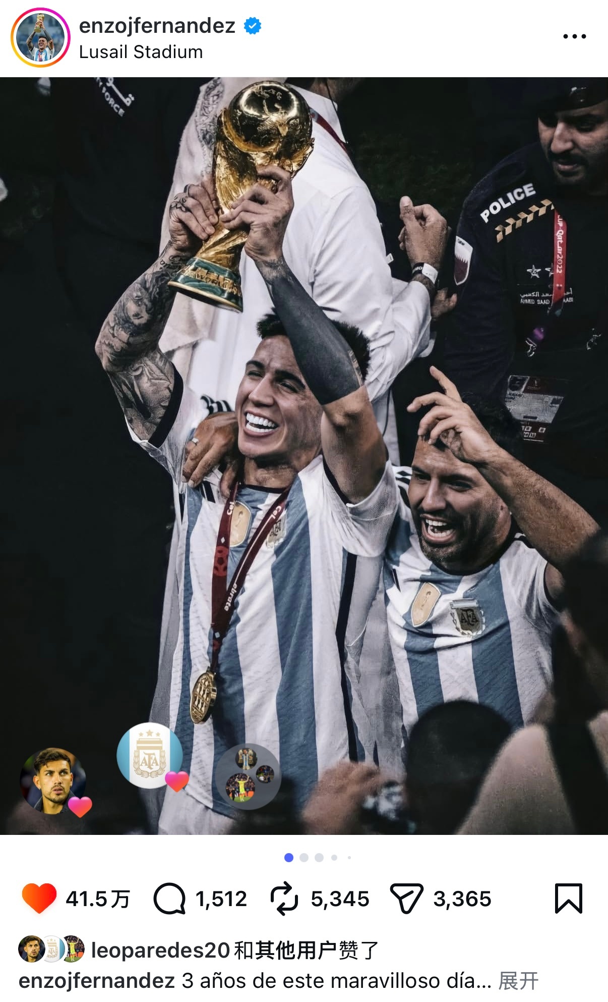 恩佐更新ins|距离那美好的一天已经三年了。在那几个小时里,我们经历了怎样的痛苦、哭泣、快乐和庆祝——我永远不会忘记,它将永远铭刻在我的心中。谢谢你,阿根廷,给了我如此多的爱。2022年12月18日 ♾️🇦🇷🏆阿根廷球迷俱乐部