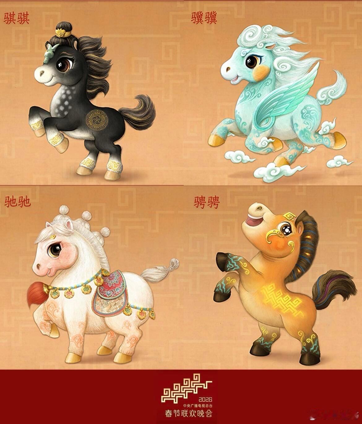 马年春晚吉祥物细节满满马年春晚吉祥物好萌啊 放大细节更可爱了,四匹不同姿态的小马,设计好有巧思。我也属马,明年我本命年了,36岁,希望一切顺利吧!