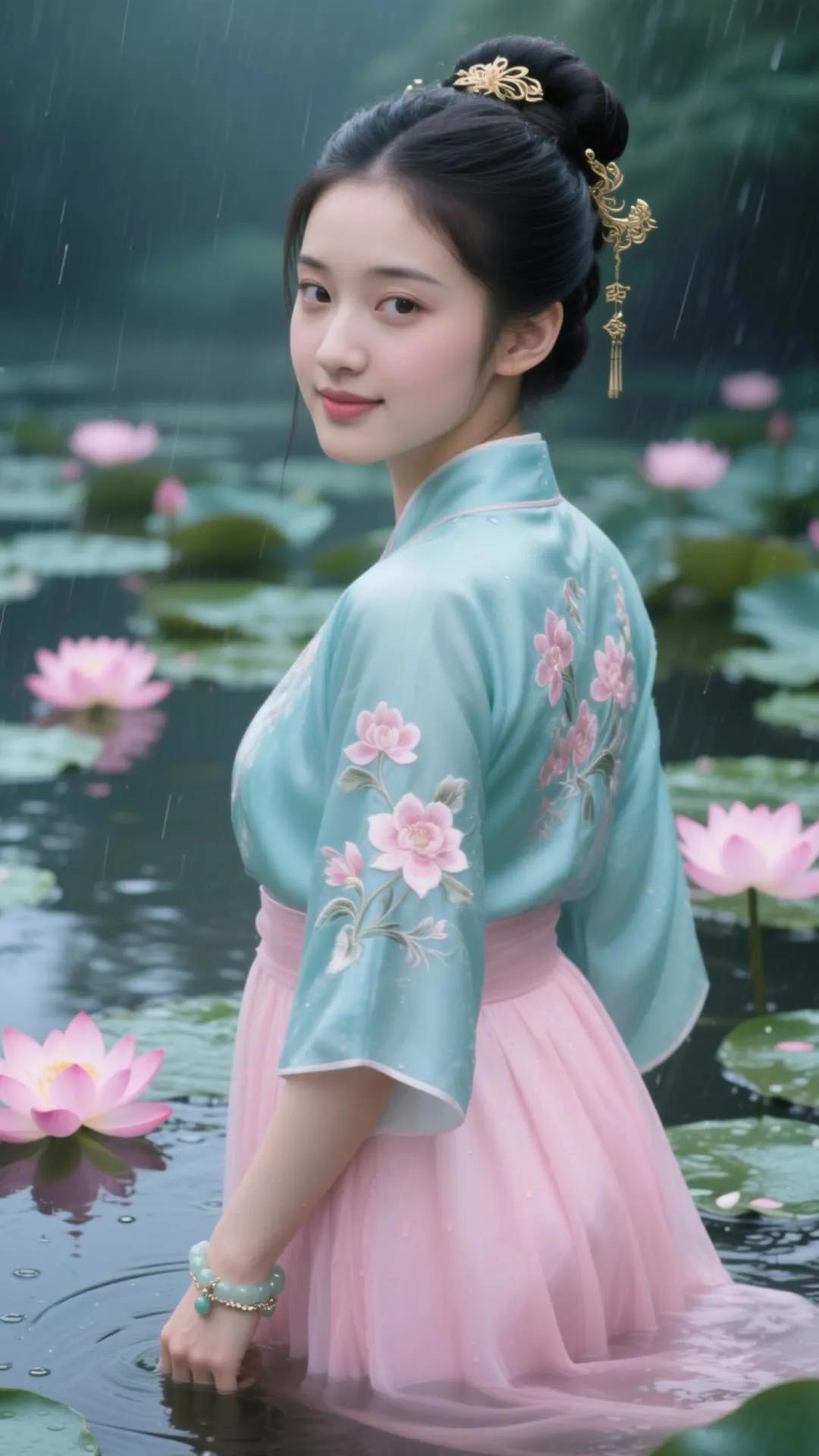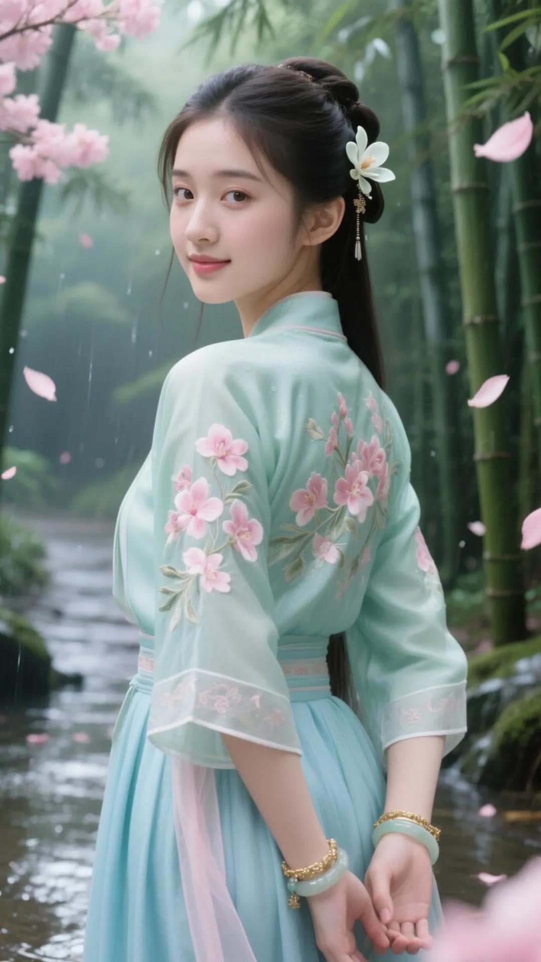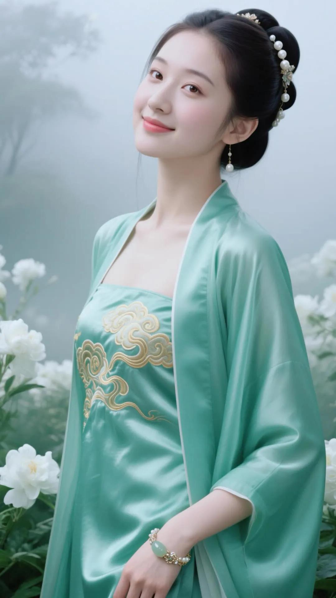 阳光下的少女,微风轻拂发梢,甜美笑容,青春洋溢。