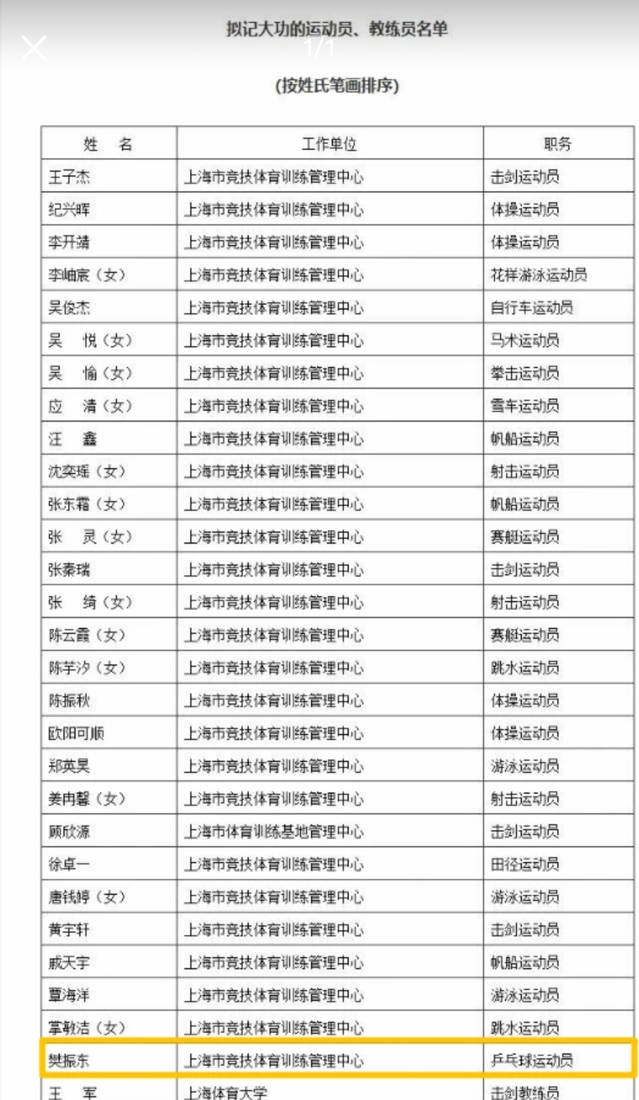 2025年12月公示,樊振东凭全运会男单卫冕、率队夺男团银牌的统治级表现获评,两年内两获上海“记大功”,以6枚全运金牌+正面标杆形象成城市体育典范。