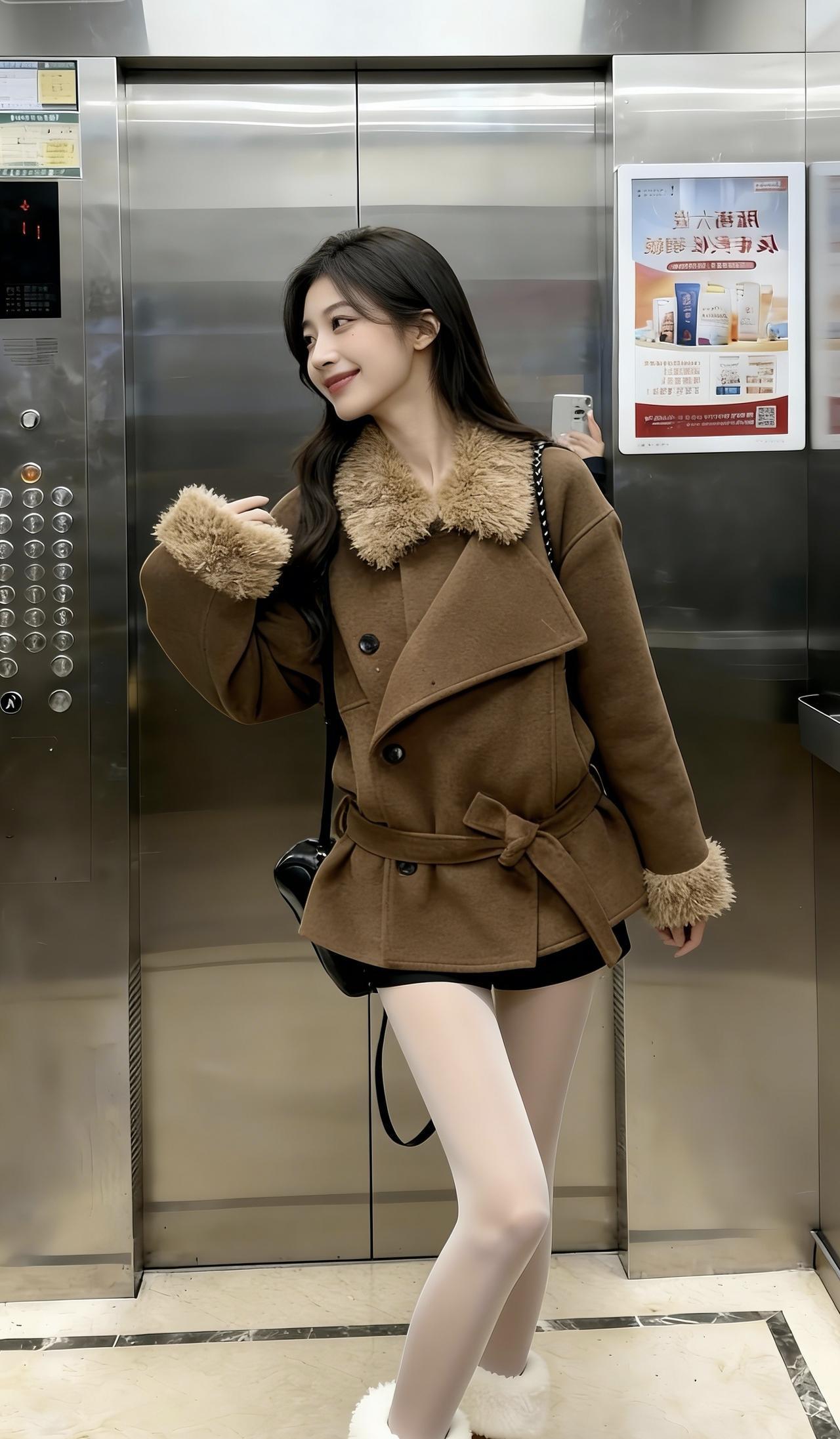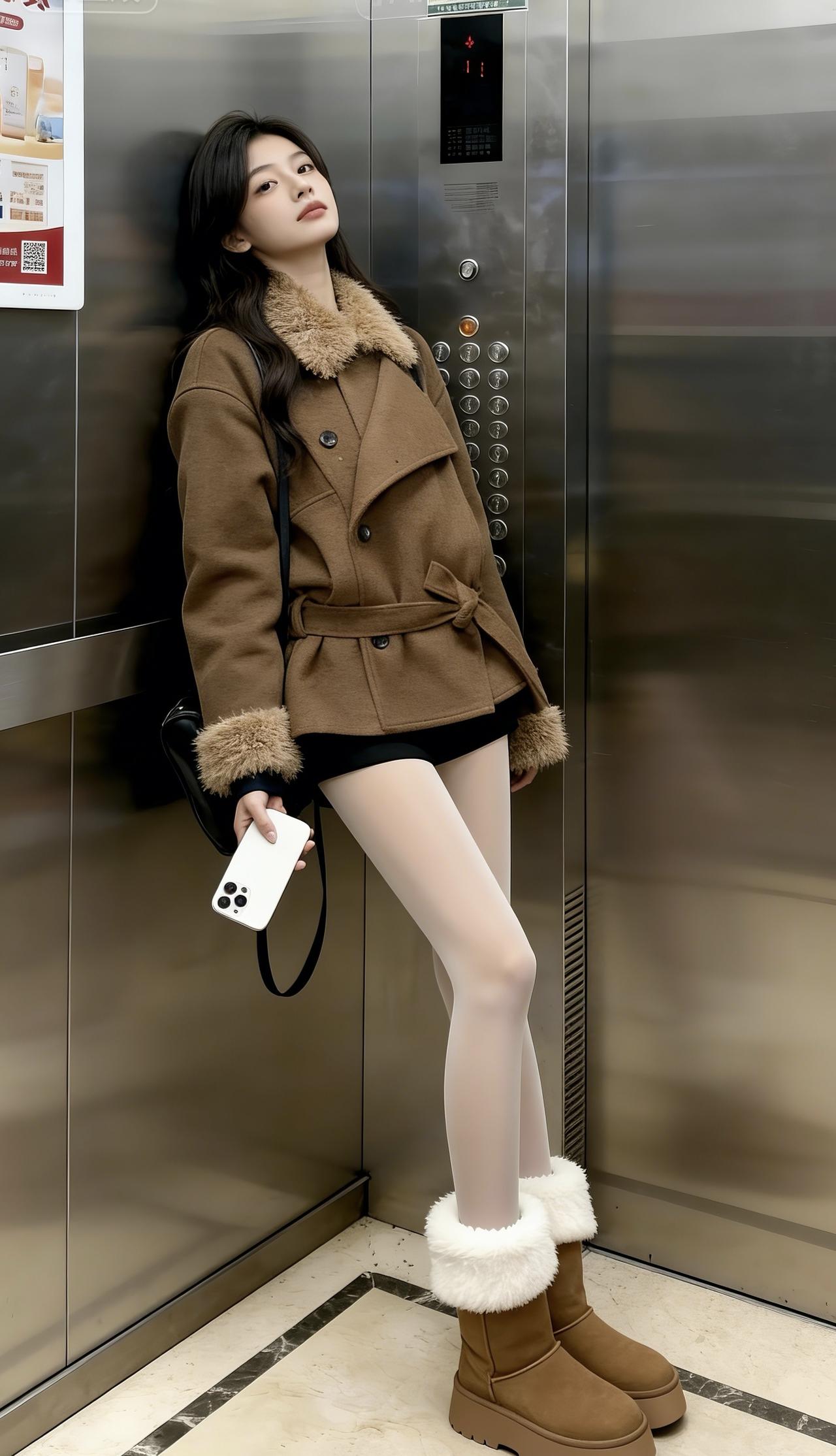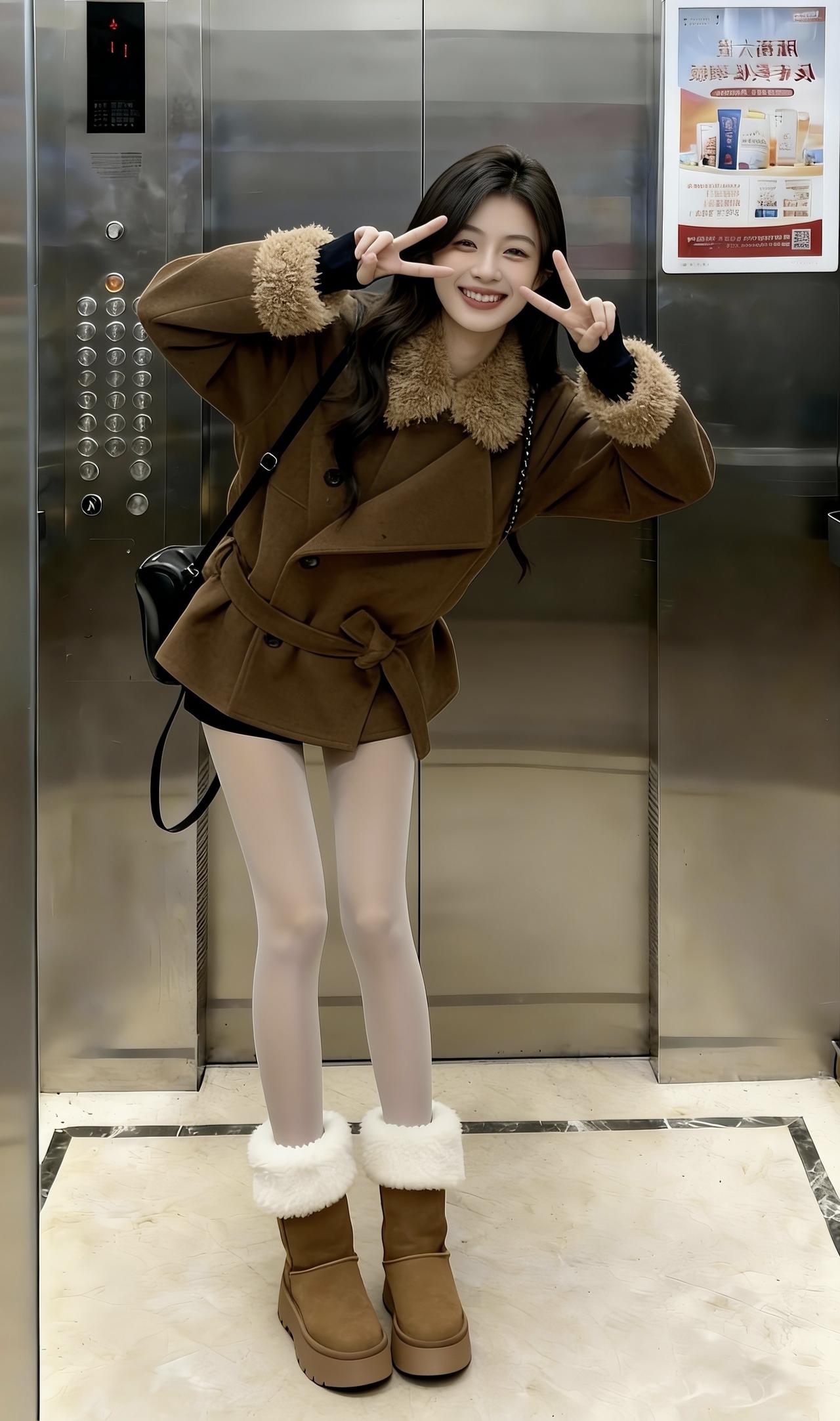 棕色系穿搭,搭配肤色光腿神器和雪地靴,爱了爱了。ootd穿搭 拍照姿势 冬季搭配 今天穿什么