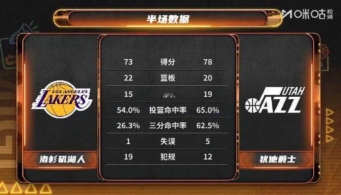 虽然半场湖人73-78仅仅落后爵士5分,但这三分命中率真是没眼看了,这三分总是老大难! 湖人的问题到底出在哪?詹姆斯14分3板4助攻,带着那些替补打得还不错。