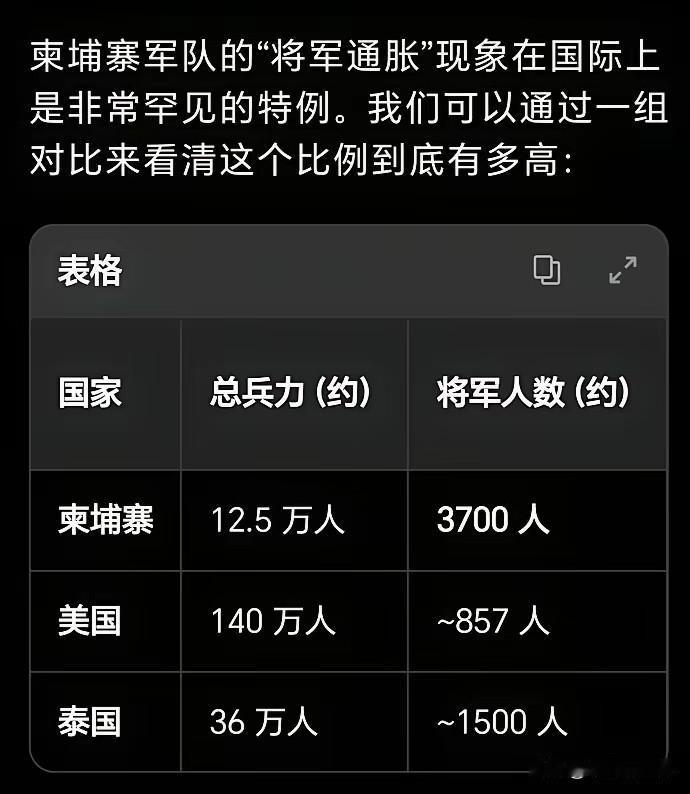 官多兵少或许是柬埔寨战斗力低下的原因之一吧! 以柬埔寨总兵力不过区区十二万多人,将军的数量竟然高达约四千人。粗略一算,平均一个将军指挥30多个人士兵,这还不包括中下级军官,这将军的含金量也就是个连长的水准。 试问一下,这样的比例能打好仗吗?