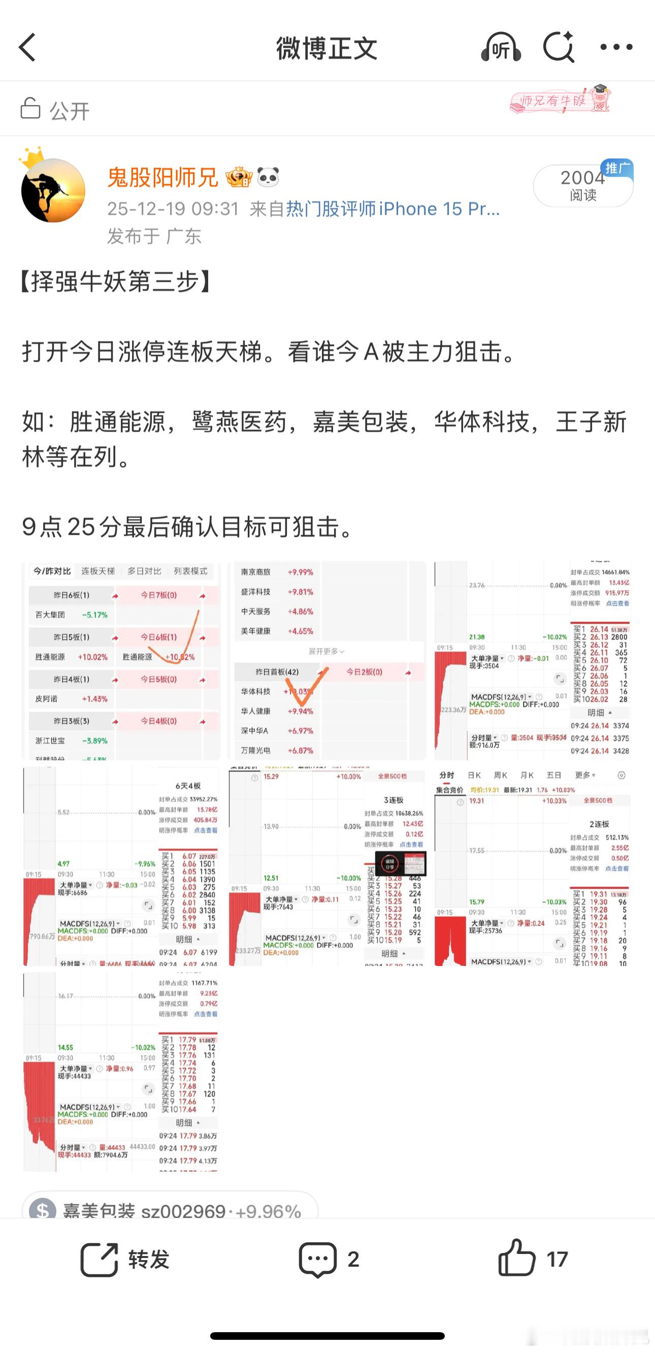 强势牛妖三步狙击法仅是狙击的一种方式,实战的方法还很多,先细细品味吧今天提示了胜通能源,鹭燕医药,嘉美包装,华体科技,王子新材等。盘中提及了老友广西广电(北投科技)。