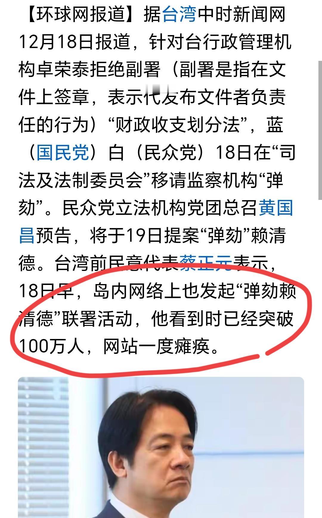 [我想静静]你们这是想把赖清德这根导火索拆了啊?赖清德被蓝白弹劾,台湾网络连署人群超百万,网站一度宕机。 千万别这么搞,就让他做下去嘛。 我们也很喜欢他。 他下去了又上来一个温水煮青蛙的,让我们更不舒服。 只有快刀斩乱麻才能解决问题。要是一直拖着,就始终是别人拿捏我们的筹码,我们每年为此付出的牺牲太大。 而且这样收台,以后治理成本也高。还是从赖清德手上收,扫得干干净净,重建台湾更好。 点右上角关注我,我们一起去看这个魔幻的世界