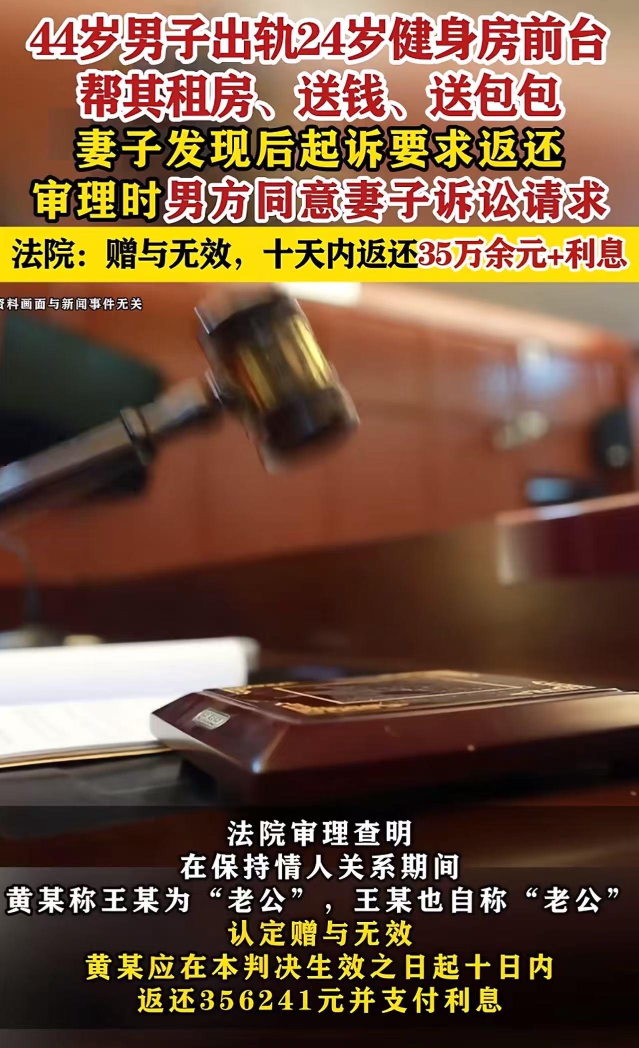 “这不是白嫖我吗?”上海黄浦,44岁男子与24岁健身房前台发展为情人关系,在外租房金屋藏娇,赠送钱财被妻子起诉!法院一审判决归还!网友:这是白嫖了姑娘!然后俩口子一合计就起诉这个姑娘把钱要回!小姑娘输的裤衩子都不剩!