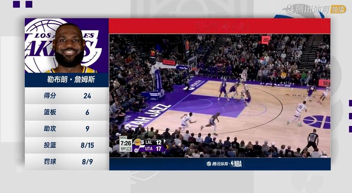 詹姆斯今天打的高效并且全面,里弗斯不在,老詹要把进攻扛起来~湖人vs爵士nba