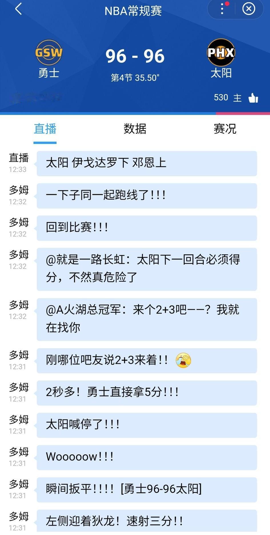 啊,勇士2秒钟直接拿了5分,比分96-96追平太阳。还有悬念! 巴特勒真是硬汉,库里站出来了,继续战平98-98!双方都没暂停了,最后21秒,太阳的球权,会有加时吗?