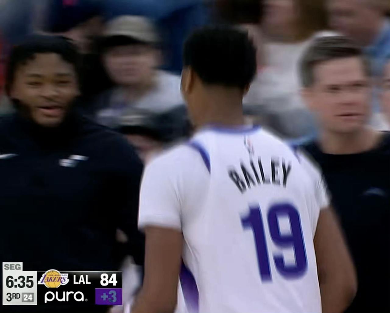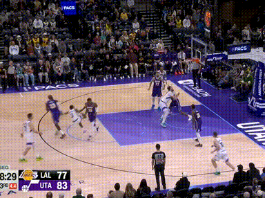 还是那个詹姆斯!单手劈扣! 比赛实在沉闷,贝利连续2个三分球,湖人84-93落后! 湖人啊,今晚是咋了……