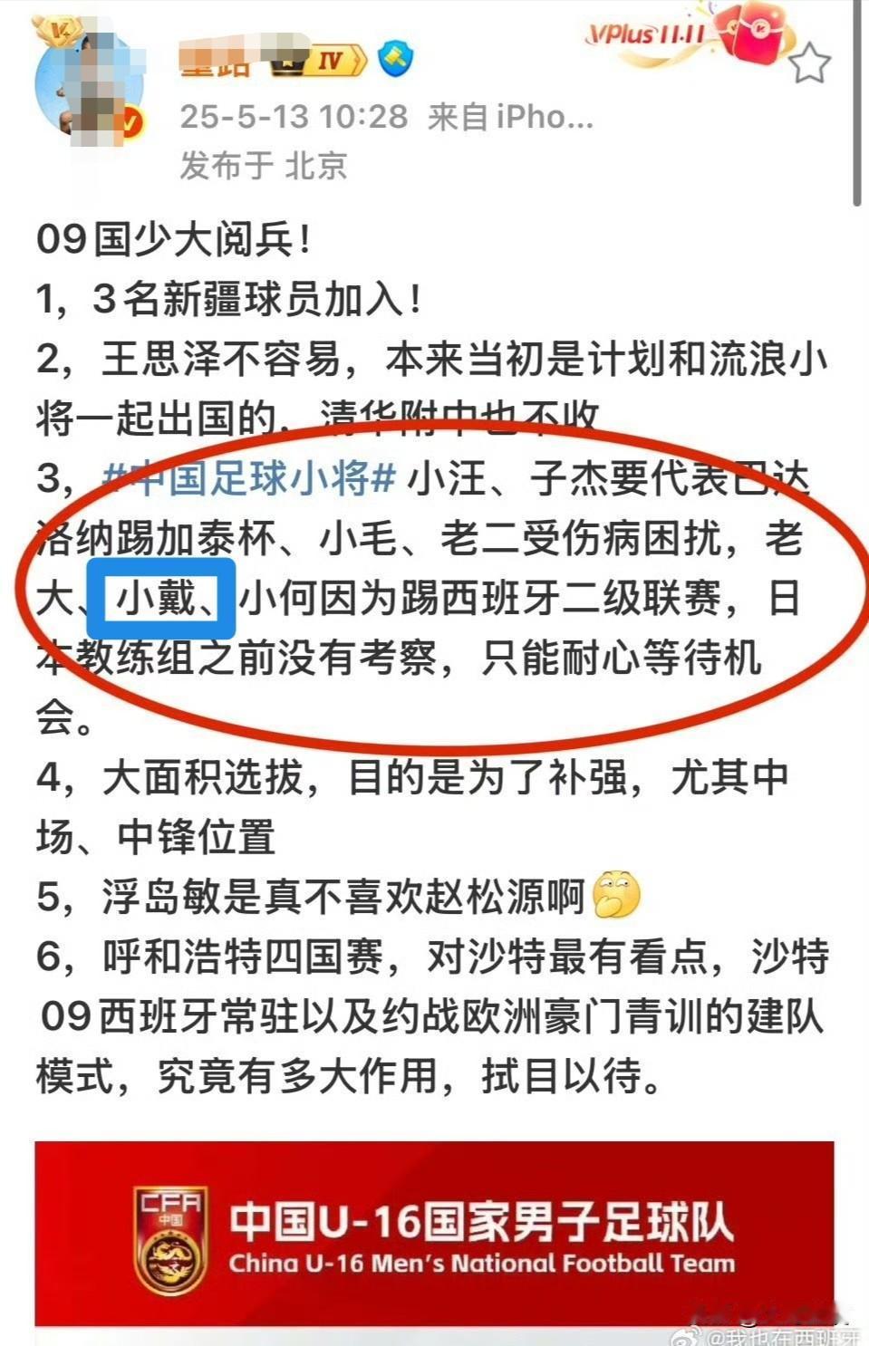 唏嘘!董路的09足球小将,首位试训业余联赛的球员将诞生[震惊] 北京时间12月18日,南京市足协正式发布《2026年江苏省城市足球联赛南京队试训的通知》,董路的09足球小将当中的悍将戴宥哲的名字赫然在列[得意] 戴宥哲出自鼓楼一中心,当初选择跟随董路去了足球小将,后来从清华附中离开,远赴西班牙留洋[可怜] 客观而言,小戴当年是被自媒体的捧杀+忽悠,放弃了清华附中这么好的平台,而今却要为一个苏超上场名额而参加试训,这多少让人有点儿唏嘘[思考] 要知道,据了解苏超的知情人士透露,苏超各个队一半以上的球员,是不用通过试训选上,而是直接入队的[吃瓜群众] 可能不少球迷不知道,当年绝大多数专业人士认为,以小戴的身体模板和综合素质,是09足球小将当中,最有可能踢上职业的,走到今天真的是太可惜了[流泪] 竞技体育是靠实力说话,而不是靠某些自媒体的过度吹捧包装,连小戴都需要参加国内业余联赛的试训,剩余的那些在西班牙所谓留洋的,就可想而知了。用不了多久退潮了,谁在裸泳就都会露在沙滩上[嘘] 最后,预祝小戴能够试训南京队成功吧[祈祷]