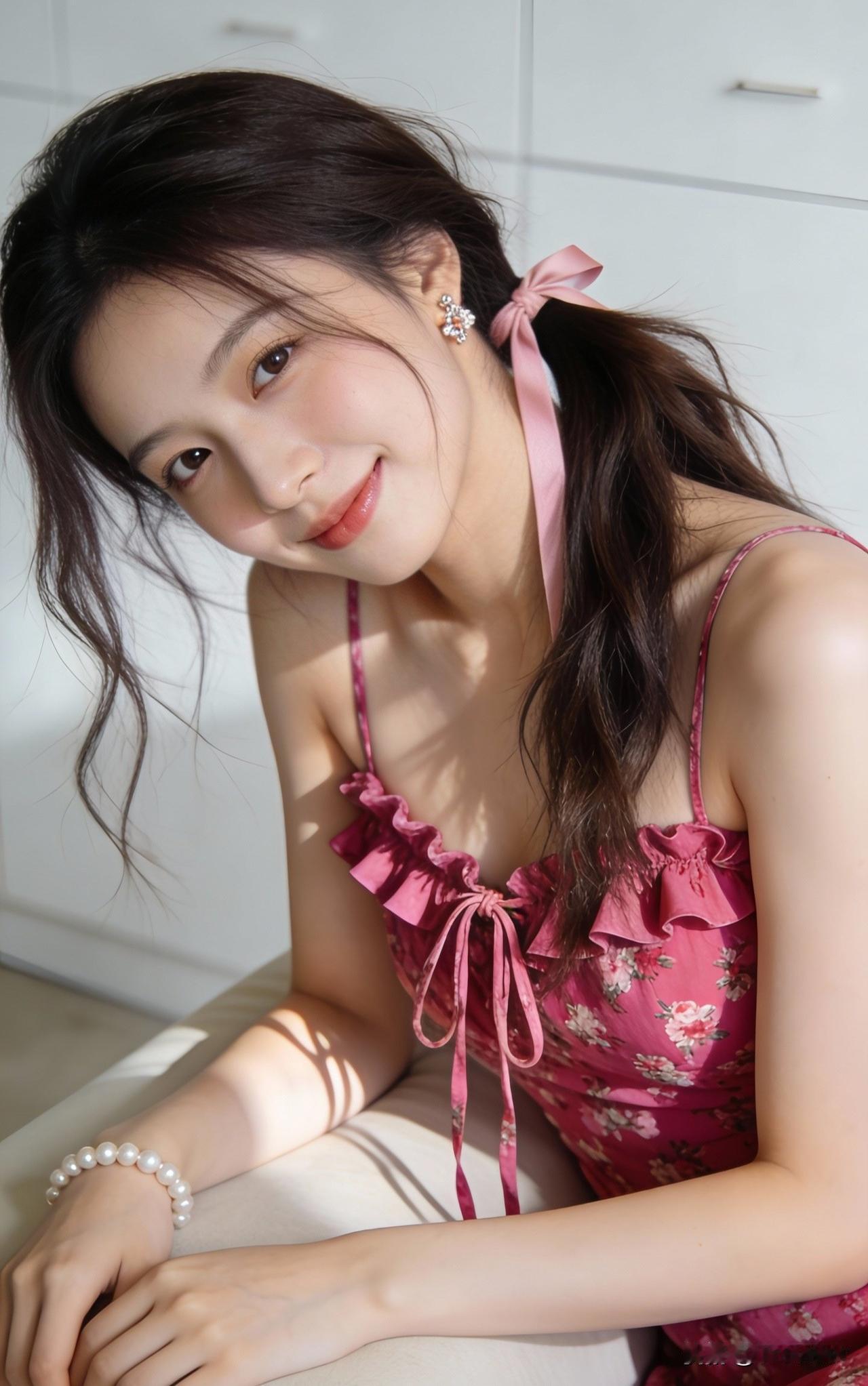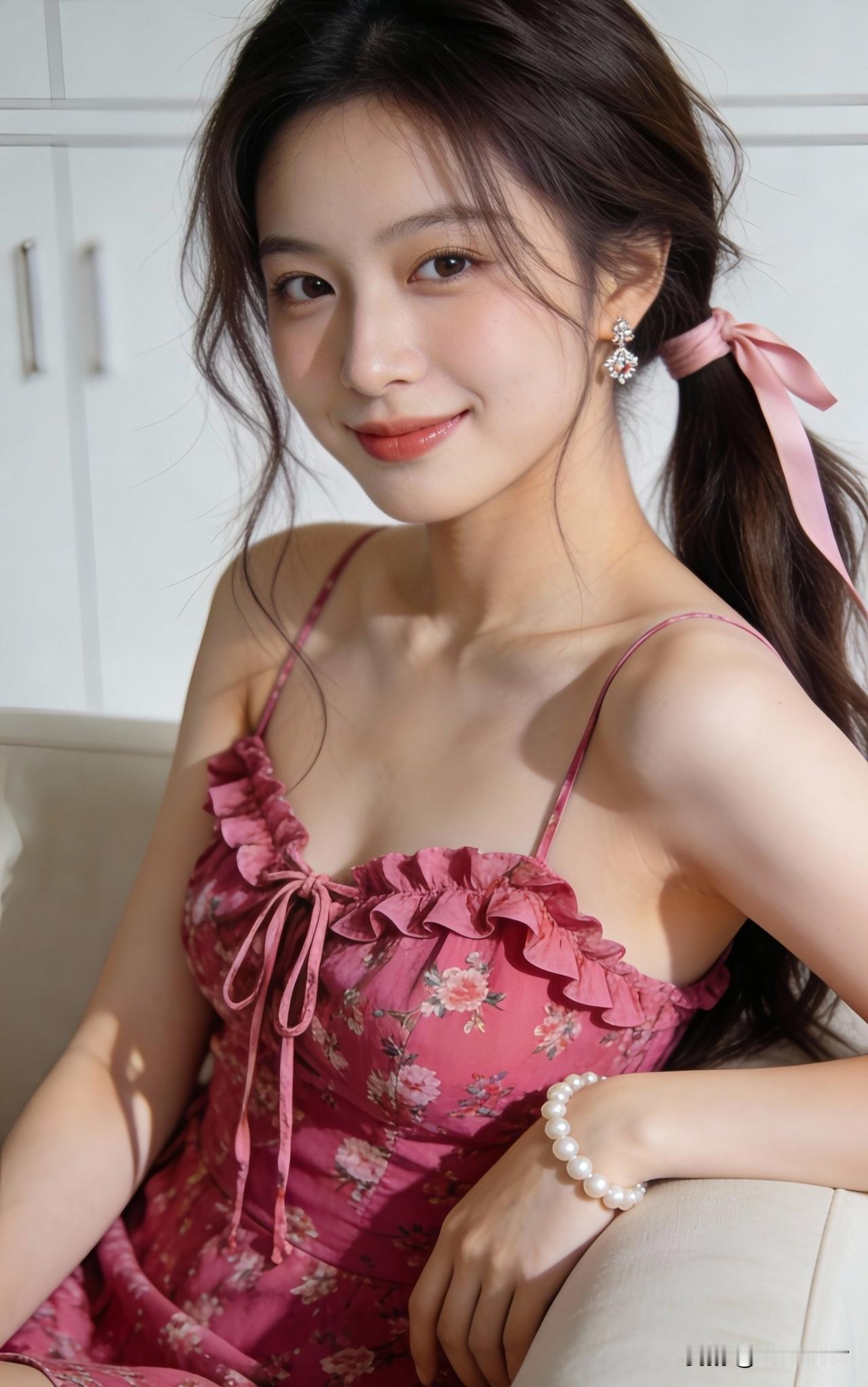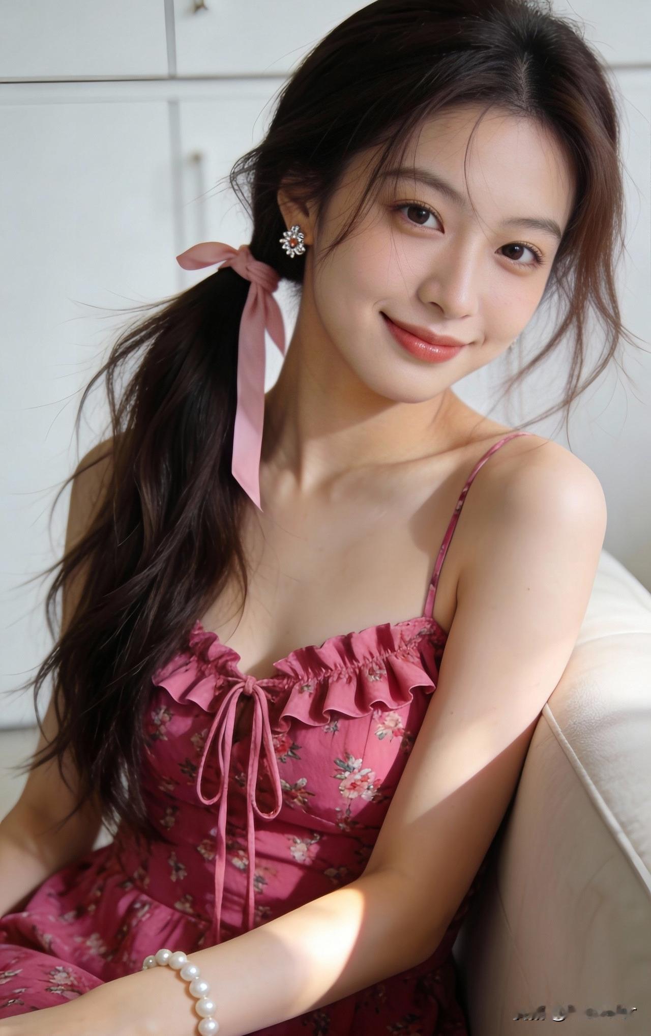 甜美少女风,粉色连衣裙搭配珍珠耳环,温柔动人!🌸💖