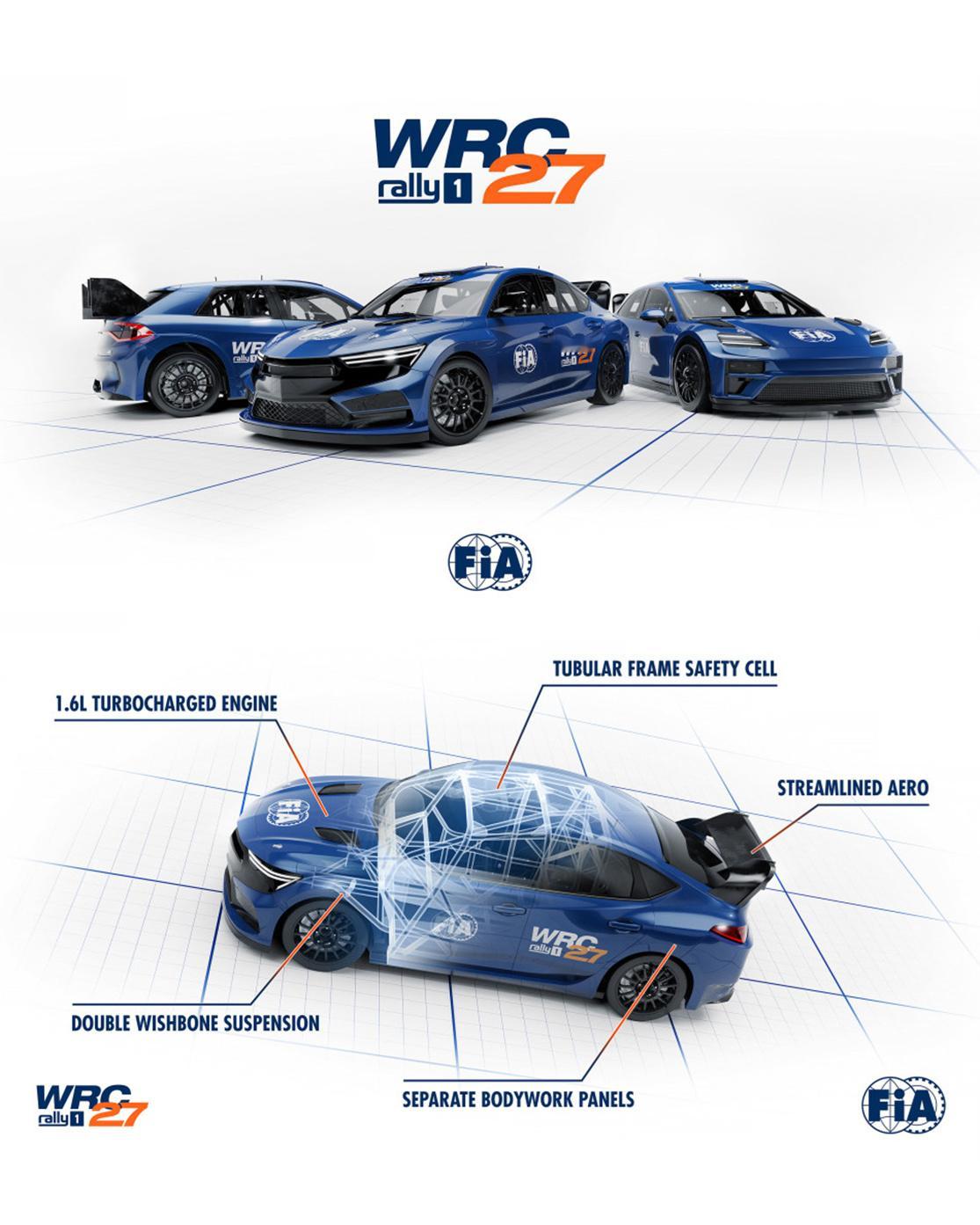 FIA公布了一组WRC27新规下的Rally1赛车概念图~WRC27新规于2024年获得批准施行,旨在提高WRC世界拉力锦标赛的灵活性和成本控制,同时保持赛车性能与赛事的精彩程度。新规则的核心是基于当前Rally1组赛车的管状框架结构的安全舱概念,新的安全舱在保证了防护性的同时降低了复杂性和成本。而在安全舱之上,新规赋予制造商在车身设计上更大的自由度,可基于量产车设计赛车车身,也能单独开发定制的赛车。此外,新规之下,车厂与改装商均划入“制造商”范畴,实现更多竞争者参与赛事。新规下的赛车对车身尺寸有明确限制:车长 - 4100~4300毫米车宽 - 最大1875毫米车高 - 最小1270毫米轴距 - 最短2600毫米动力系统由1.6升涡轮增压引擎提供,输出290马力,未来允许引入其他动力系统;赛车在传动方面将匹配5速变速箱及四驱系统,采用双叉臂悬架,而制动和转向系统则源自当前Rally2规格。最后是成本限制,赛车价格相比现有规则降低约50%,上限为34.5万欧元。云评:概念图里有一台类似保时捷Macan的物体,该不会就是前两天说的Project Rally One的新车吧……🧾 FIAWRC世界拉力锦标赛赛车