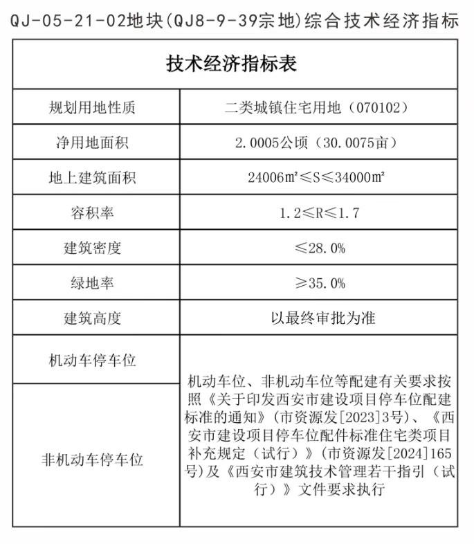 容积率仅1.7!被多个公园包围!西安一“宝藏”住宅地块规划公示.... 12月17日,西安曲江新区官网发布了《曲江新区QJ-05-21-02地块实施详细规划及QJ8-9-39宗地规划条件公示》,内容显示: QJ8-9-39宗地位于西安曲江二期春临四路以南,公田四路以西,曲江电竞文化公园东北角,土地面积30.0075亩,土地性质为住宅用地,容积率1.2-1.7,建筑密度不大于28%,绿地率不小于35%,地上建面24006㎡-34000㎡。 从区位上看,宗地属于曲江二期,西侧和南侧紧邻西安曲江电竞文化公园(占地约131亩,设有泵道小轮车场地、活动广场等);北侧紧邻曲江文化运动公园(占地约182亩,含足球场、网球场、篮球场等)和曲江电竞中心;东南侧一路之隔就是曲江竞技中心和曲江MetaPark(漫塔街区);东侧距离曲江第三小学东校区、曲江第三中学约200米;最近的地铁是地铁4号线金乎沱站,约1.5公里左右; 周围还有曲江花影公园、曲江大华社区公园、西安市曲江第三小学、曲江第二中学、西安市曲江第十三小学、西安曲江君安城市广场、西安市人民医院航天院区、西安市胸科医院等配套! 项目周边目前主要有两个待售在售项目,分别是最近刚刚价格公示的中铁云岫曲江、以及刚刚规划公示的中交建管代建的中交曲江御府项目。 值得注意的是,宗地是目前西安市场上为数不多的低密地块,对比周边中铁云岫曲江(容积率1.7)、中交曲江御府(容积率2.5),未来大概率规划为洋房、小高层或叠拼产品,以高端改善型住宅为主,契合曲江二期“品质居住区”的定位。