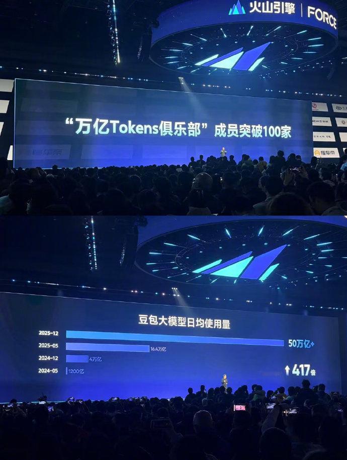 AI在中国市场杀疯了!豆包大模型日均tokens使用量超过50万亿,超100家企业使用量超一万亿!在昨天火山引擎FORCE原动力大会上,还发布了豆包大模型1.8,五月的数据还是16万亿 短时间增加这么多,太厉害了吧。豆包大模型豆包大模型1.8