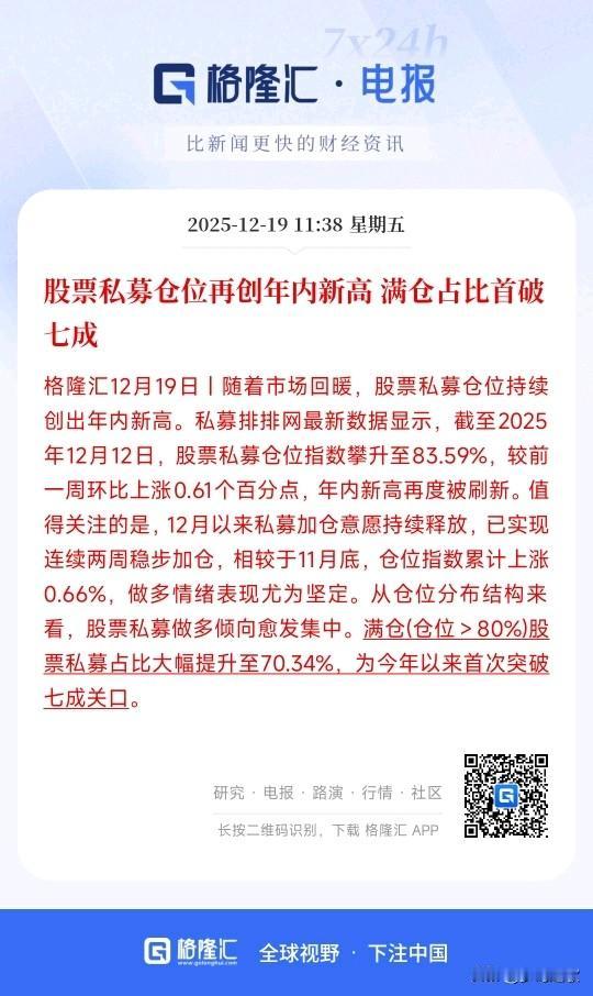 A股行情接下来有没有机会,看看私募各位大佬的仓位就知道了 私募基金不像公募一样,都是靠真本事吃饭的,如果行情不好仓位都不会那么重,看看以下私募的仓位 林园:满仓,重仓消费 高毅资产:90%仓位,重仓科技成长 景林资产:87%仓位,重仓消费龙头 淡水泉:88%仓位,重仓成长科技领域 私募的仓位已经说明了一切,就是接下来A股还是牛市的行情,全市场私募的仓位已经达到了83.59%,这是一个非常恐怖的数字。