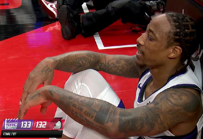 裁判太黑了! 德罗赞翻身中投命中后,国王反超开拓者1分,留给开拓者4.4秒的时间,且没有暂停,要从后场发球。 阿夫迪亚运球到前场,遭遇了国王队的夹击,裁判居然响哨了,吹罚了威少犯规! 从慢动作看,有接触吗?有!但这个就是标准的轻微接触,放在比赛中任意一个时间点都不会吹犯规,结果到了最后1秒,裁判给开拓者罚球,让他们完成绝杀。 这吹罚简直太离谱了,控分控到这种程度,也是罕见。 德罗赞常规时间三分绝平,加时赛中投准备绝杀了,裁判出来抢戏,他最后坐在篮下等待裁判的判罚,真的已经绝望了。