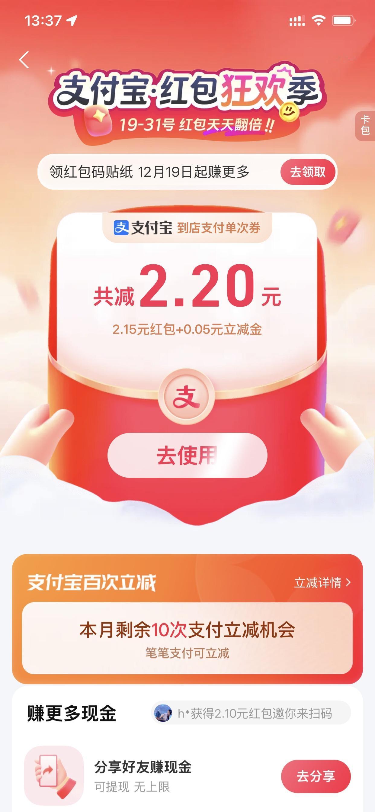 朋友们,我觉得支付宝这个功能,必须和大家分享一下,12月底支付宝又可以领取大红包了。 我教你操作,首先打开支付宝,在首页搜索框粘贴这个Xm7N9Fh83AR点击搜索就可以领取大红包了。要先复制: Xm7N9Fh83AR 复制完成后,在支付宝首页搜索框长按粘贴,然后搜索就可以领取大红包! 亲测可以领取大的红包,可以直接消费!