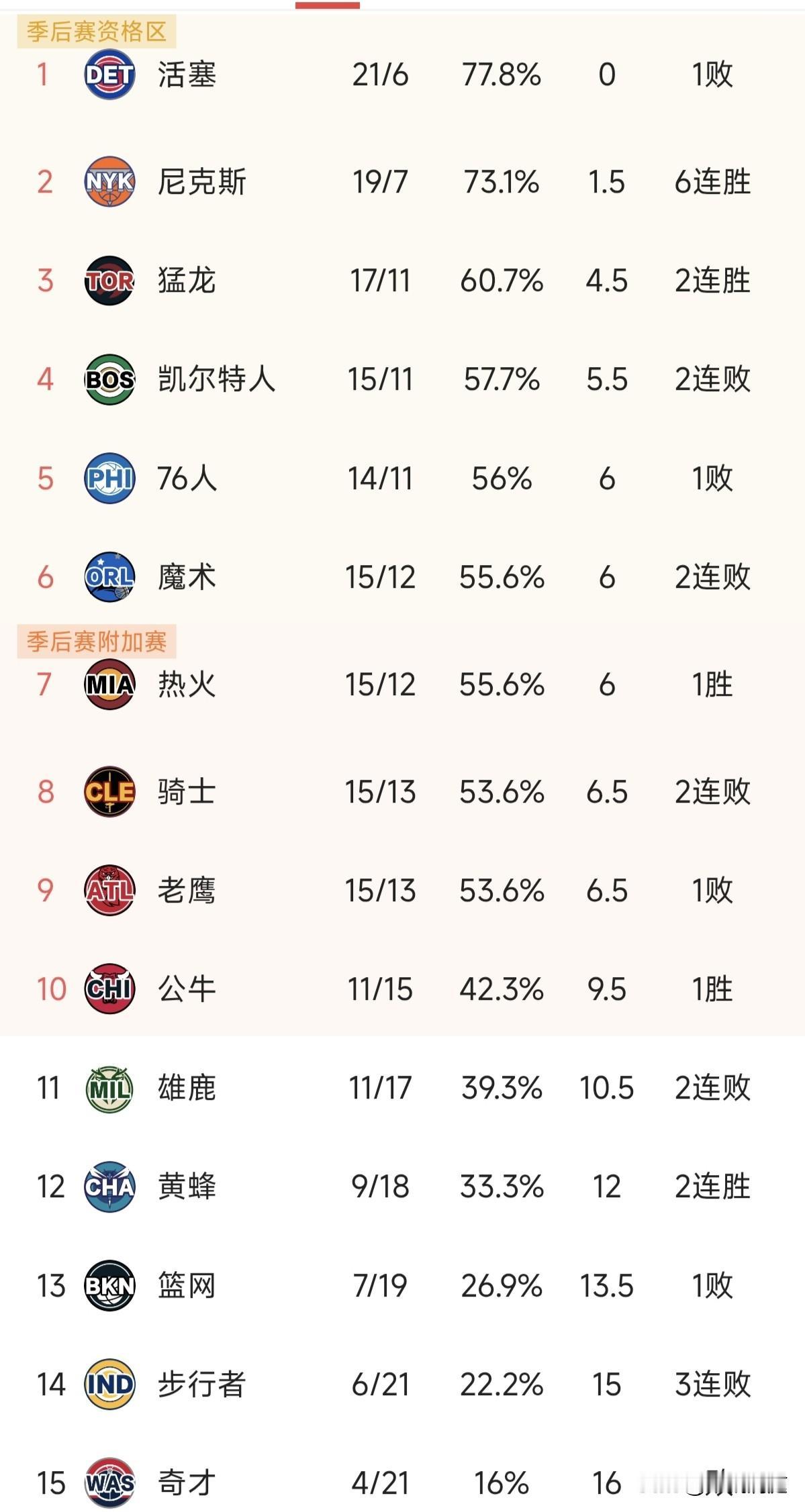 东部第一活塞和倒数第一今天都输给西部球队,魔术也是输给掘金,西强东弱太明显了。第二的尼克斯居然险胜倒数第二的步行者,雄鹿输给猛龙后,和东部第十的公牛差一个胜场了。有些球队到底是培养新人还是争季后赛,估计现在也还没明确方案。据说塔图姆本赛季要复出,不知道凯尔特人能稳住不。